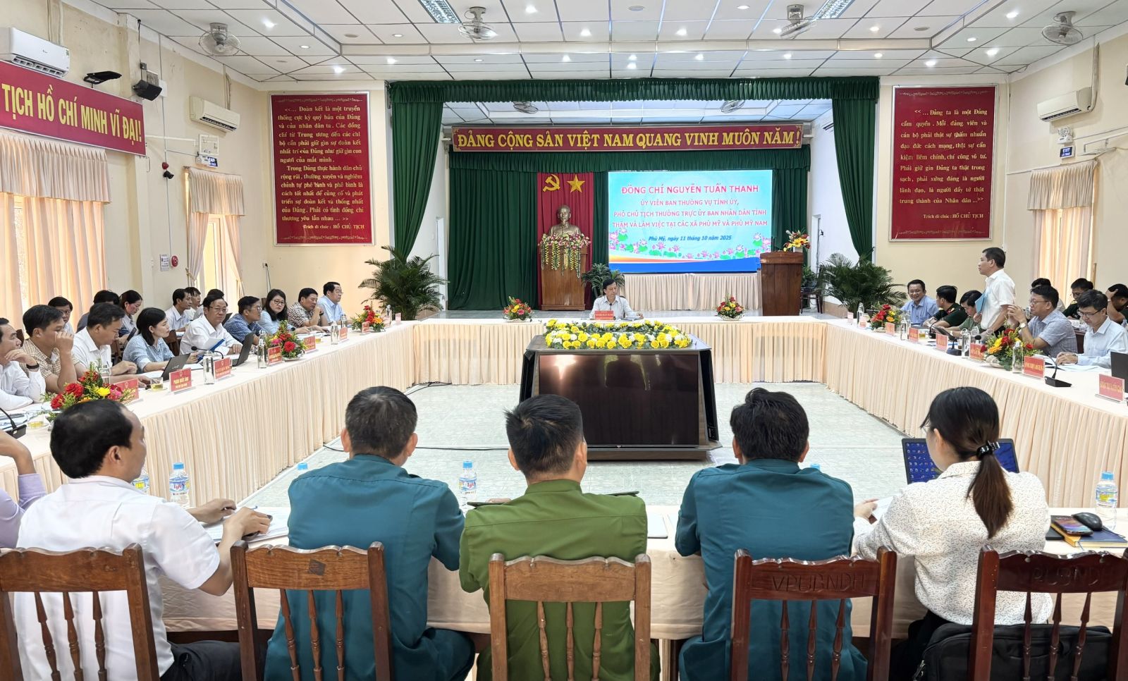 Phát biểu kết luận buổi làm việc, Phó Chủ tịch Thường trực UBND tỉnh Nguyễn Tuấn Thanh biểu dương nỗ lực của chính quyền và nhân dân 02 xã trong việc ổn định tổ chức bộ máy, duy trì hoạt động quản lý và phát triển kinh tế-xã hội sau sáp nhập.