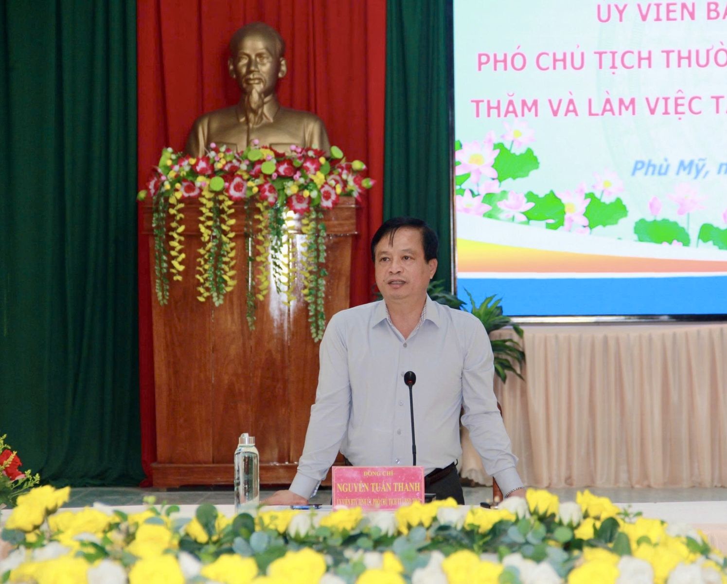 Lãnh đạo xã Phù Mỹ báo cáo tại buổi làm việc