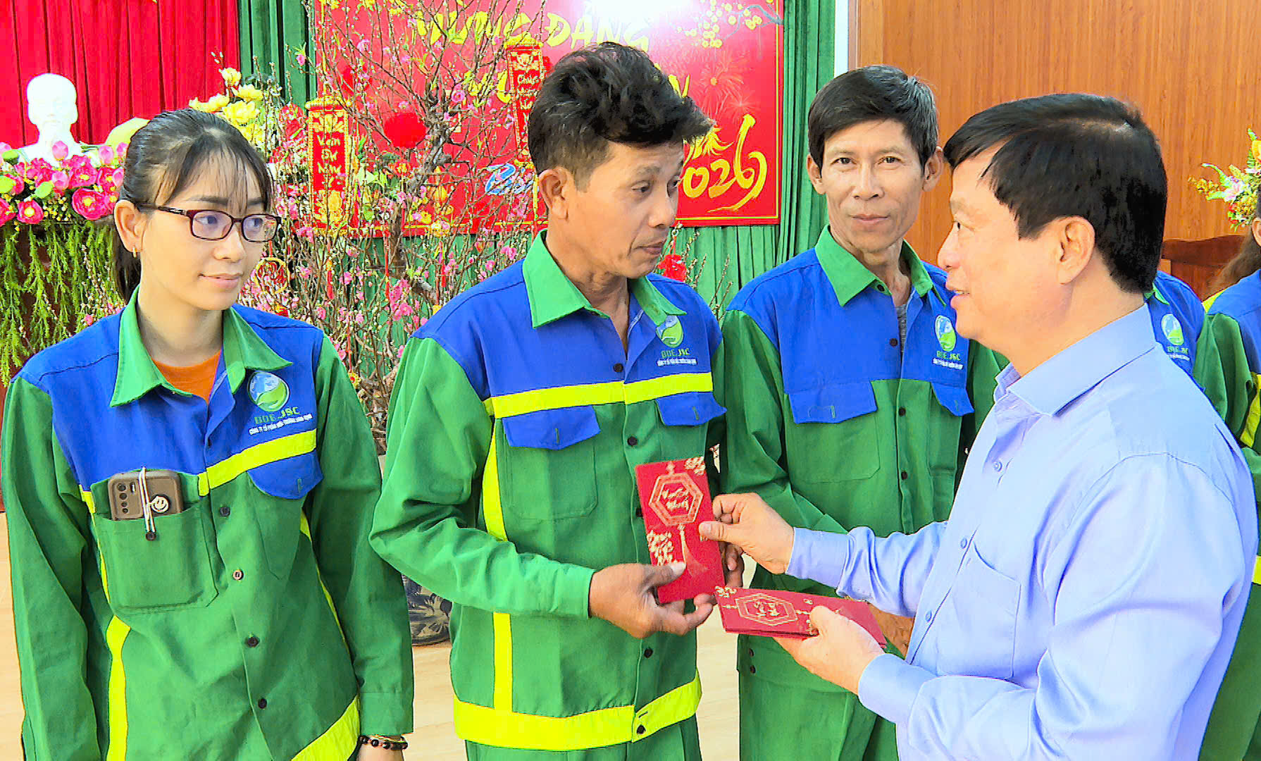 Nhân dịp chuẩn bị bước sang năm mới, đồng chí Nguyễn Tuấn Thanh đã trao quà của Tỉnh ủy, HĐND, UBND, Ủy ban MTTQ Việt Nam tỉnh cho tập thể Công ty; đồng thời, gửi lời chúc sức khỏe, hạnh phúc và bình an đến gia đình toàn thể người lao động trong đơn vị.