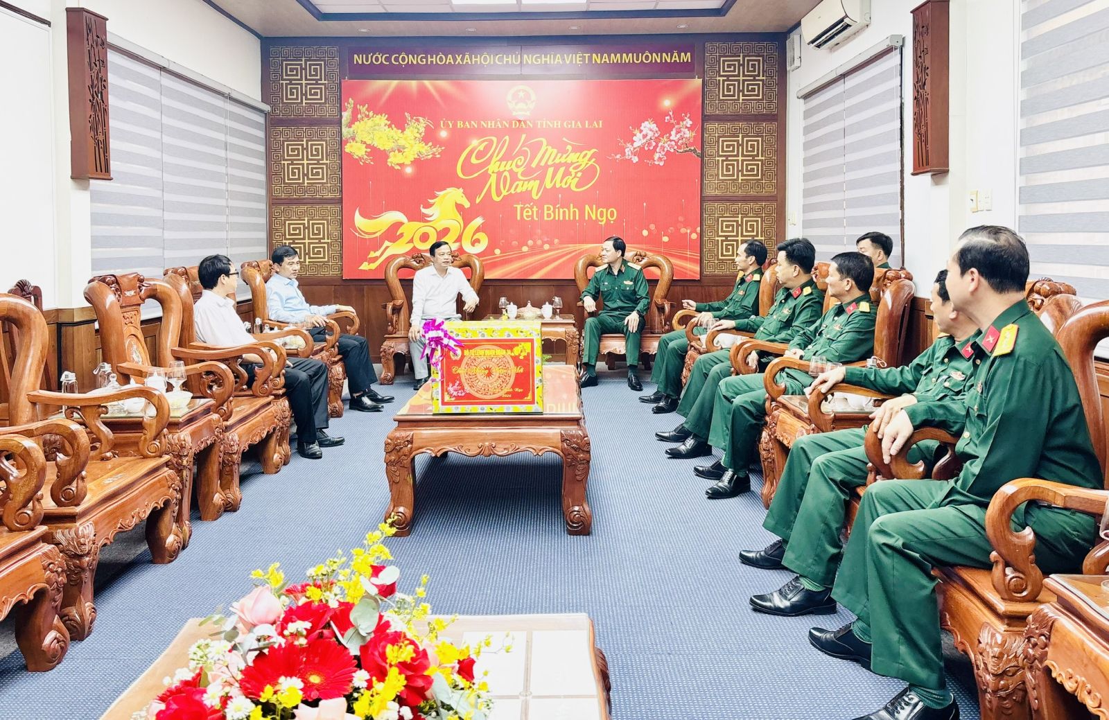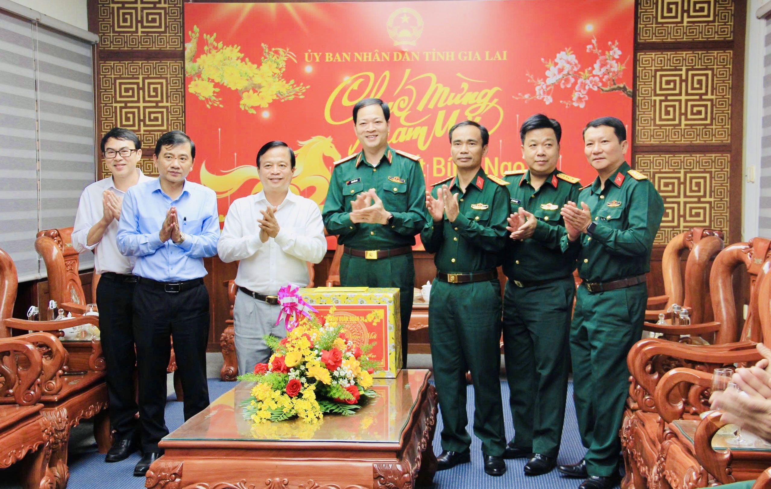 Tư lệnh Quân đoàn 34 gửi lời chúc mừng năm mới an khang, thịnh vượng tới Lãnh đạo UBND tỉnh, cùng toàn thể cán bộ, công chức, viên chức và Nhân dân các dân tộc trong tỉnh; chúc tỉnh Gia Lai tiếp tục phát triển ổn định, bền vững, quốc phòng-an ninh được giữ vững, đời sống Nhân dân ngày càng được nâng cao.