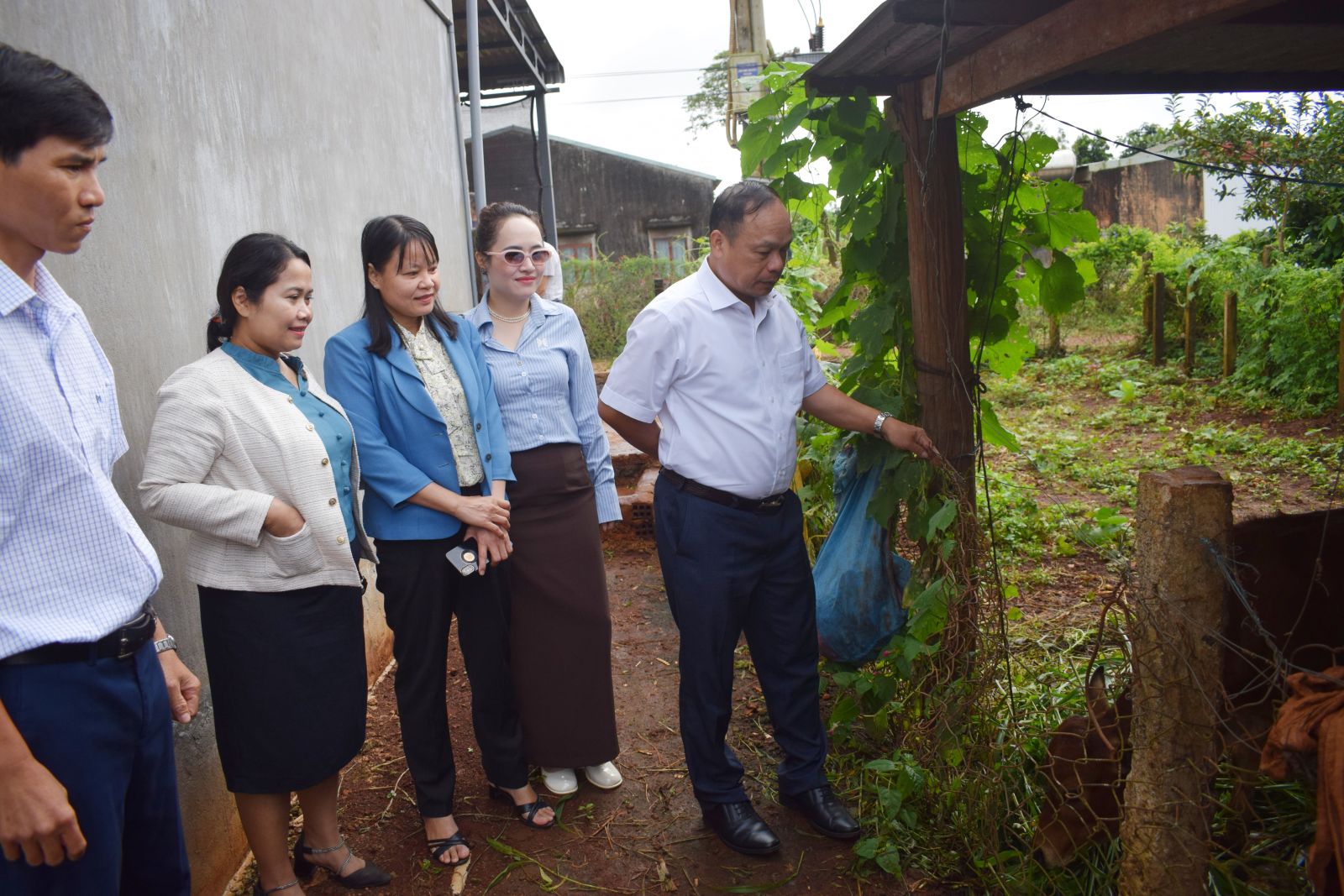Phó Chủ tịch UBND tỉnh Dương Mah Tiệp cùng đoàn công tác thăm hộ gia đình bà Kpuih Tin được hỗ trợ bò sinh sản tại làng Ngol- xã Chư Sê