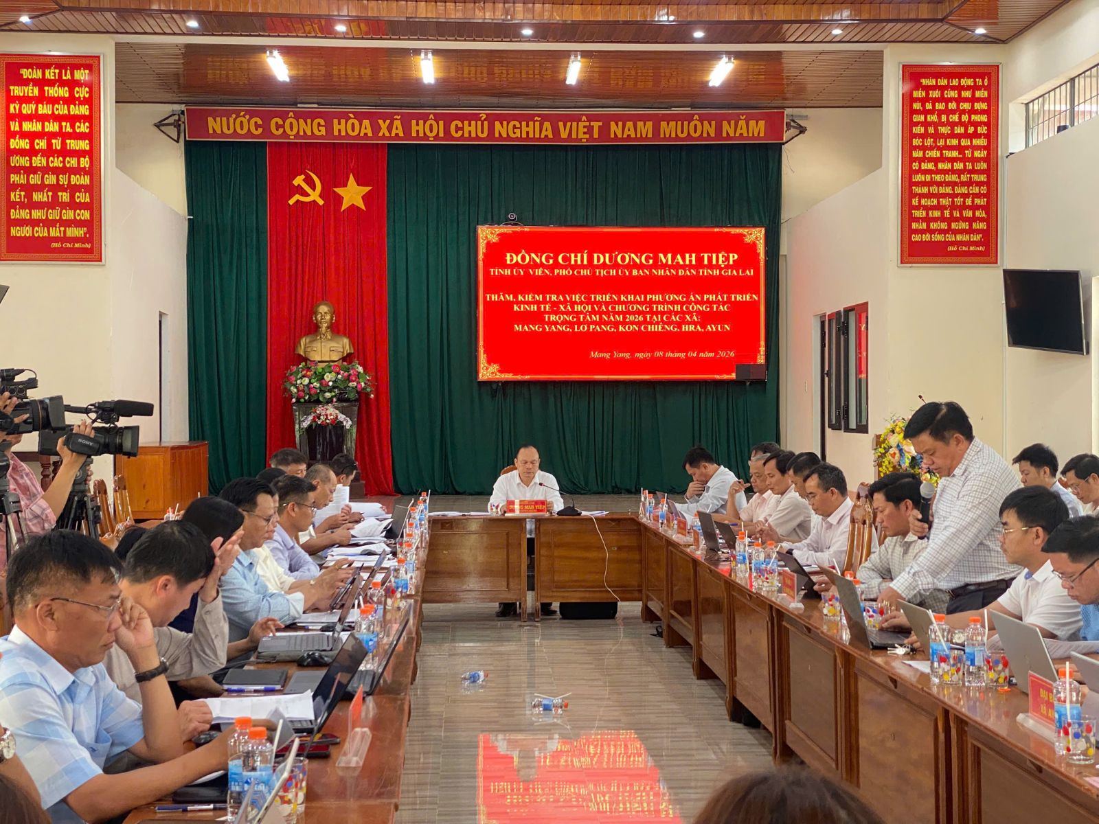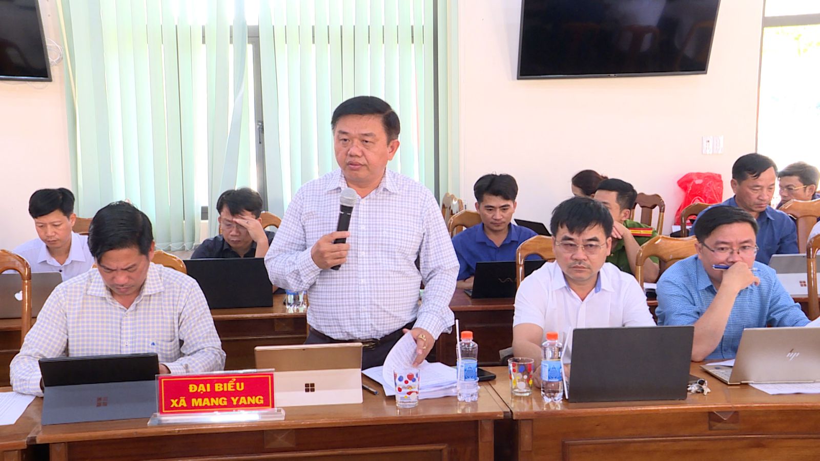 Lãnh đạo xã Mang Yang báo cáo