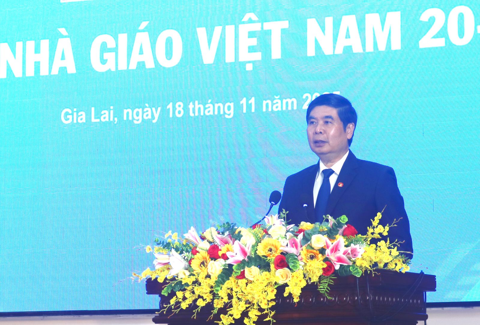 Nhân dịp này, Phó Chủ tịch Lâm Hải Giang bày tỏ lòng biết ơn sâu sắc tới quý thầy cô - những người đã cống hiến thầm lặng nhưng bền bỉ, đào tạo nên nhiều thế hệ nhân lực ưu tú, trong đó có nhiều cựu sinh viên đang giữ những trọng trách quan trọng của tỉnh, đóng góp hiệu quả cho sự phát triển của địa phương. Đồng thời, đồng chí Phó Chủ tịch mong muốn các bạn sinh viên sẽ nỗ lực hơn nữa để trở thành nguồn nhân lực chất lượng cao, làm chủ công nghệ, đóng góp xứng đáng cho sự phát triển tỉnh Gia Lai nói riêng và của quê hương, đất nước nói chung.