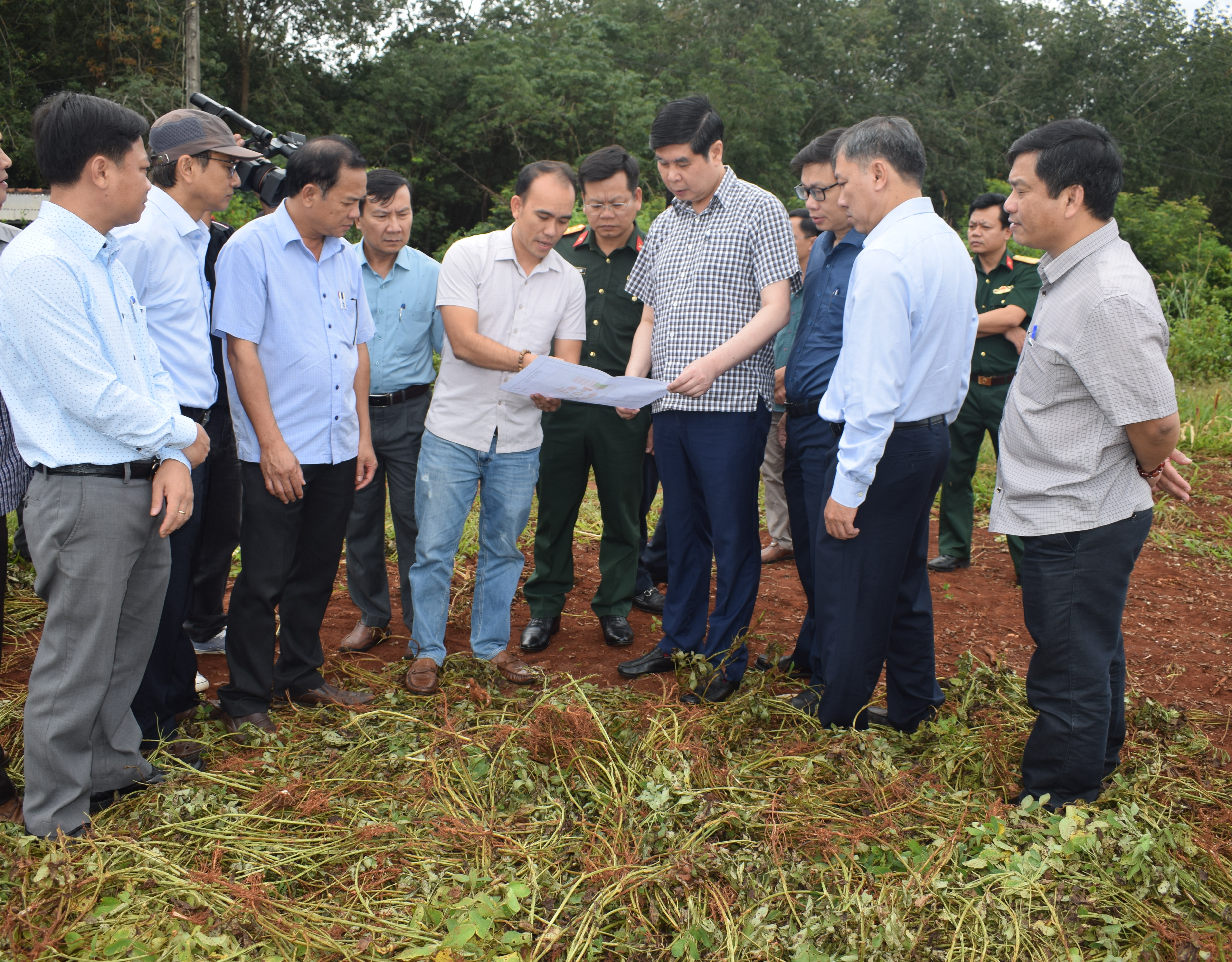 Phó Chủ tịch UBND tỉnh Lâm Hải Giang nghe báo cáo về dự án tại xã Ia Nan