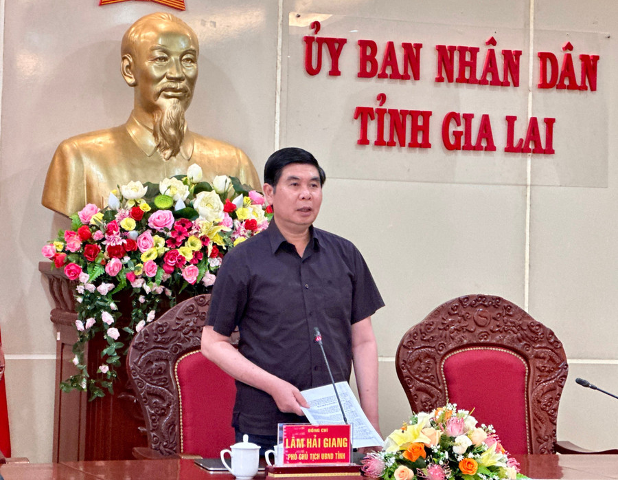 Phó Chủ tịch UBND tỉnh Lâm Hải Giang phát biểu chỉ đạo tại buổi làm việc. Ảnh: Hà Duy
