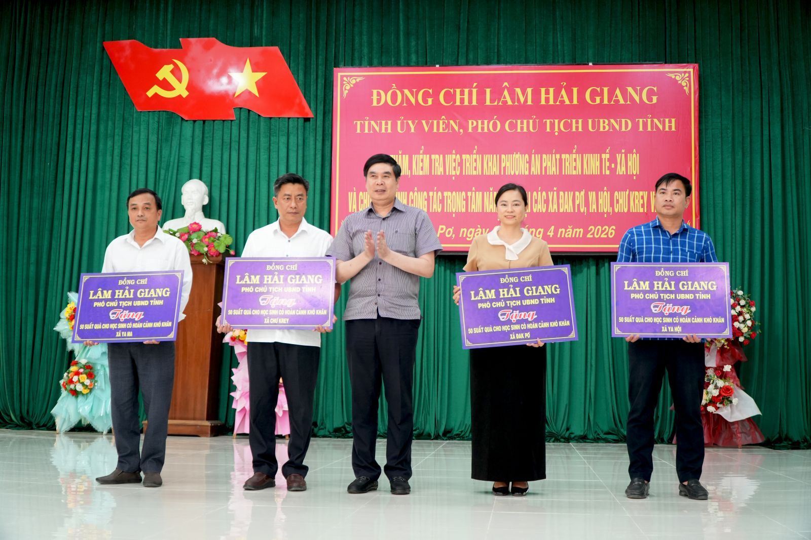 Dịp này, Phó Chủ tịch UBND tỉnh Lâm Hải Giang đã trao 200 suất quà (mỗi xã 50 suất) cho học sinh có hoàn cảnh khó khăn trên địa bàn 04 xã: Đak Pơ, Ya Hội, Chư Krey và Ya Ma.