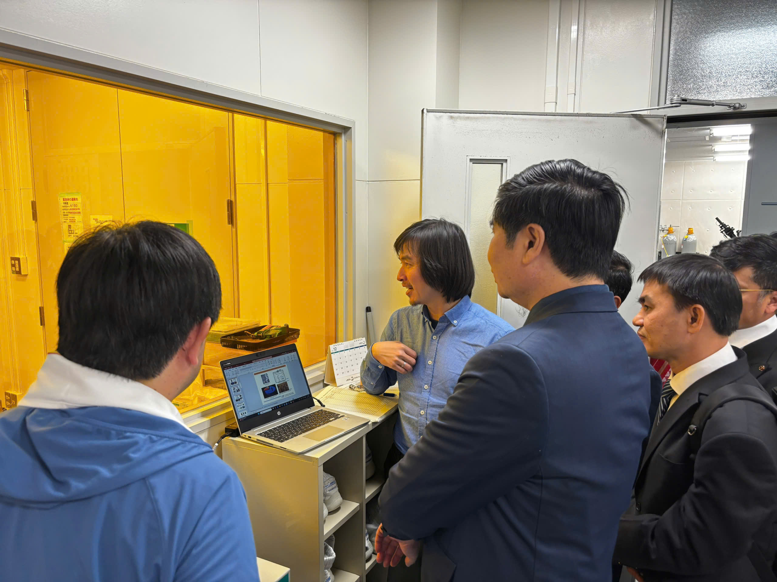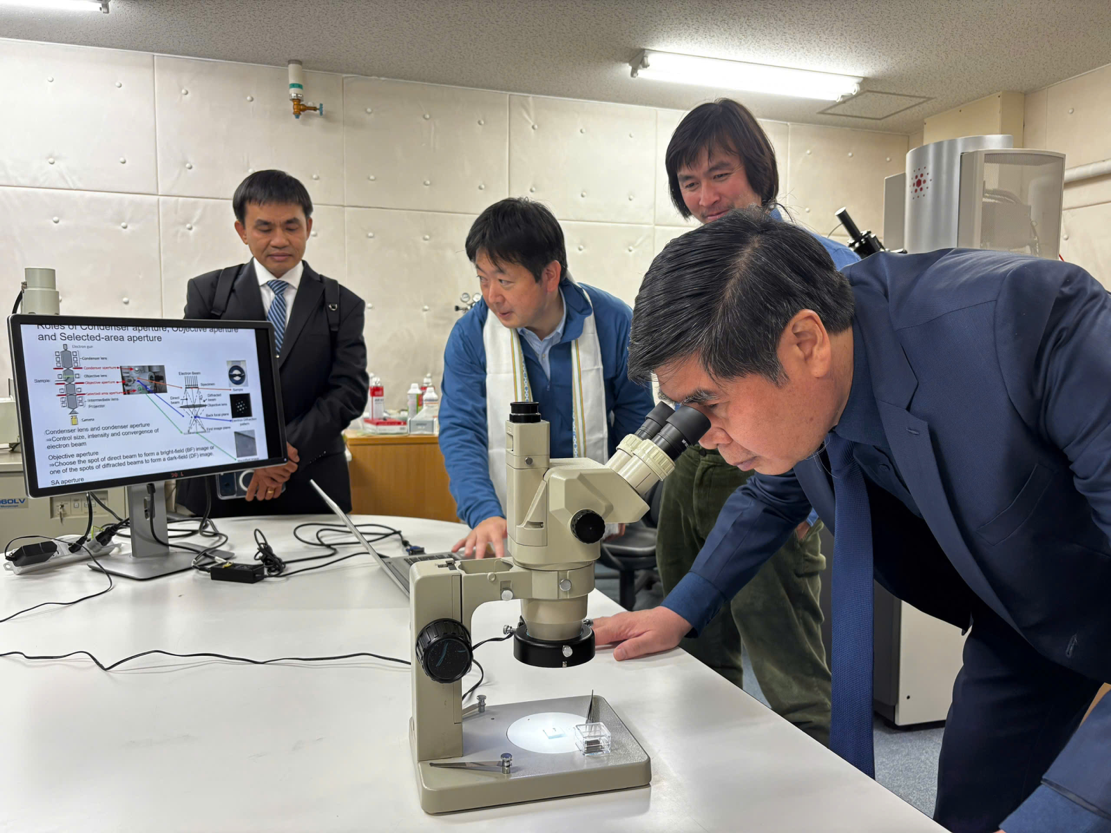 Đoàn công tác tham quan thiết bị phòng thí nghiệm Quang lượng tử, tại Đại học Osaka Metropolitan