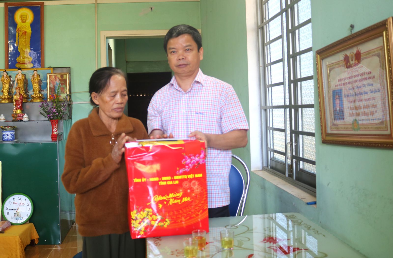 Cùng ngày, đoàn đã đi thăm, tặng quà các gia đình chính sách tiêu biểu: bà Phạm Thị Dũng (thương binh) và Đinh Văn Hiệp (thương binh) ở xã Hra; ông Prôm (chiến sĩ cách mạng bị địch bắt tù đày) và ông Phói (chiến sĩ cách mạng bị địch bắt tù đày, nhiễm chất độc hóa học trực tiếp trên 81%) ở xã Ayun; ông Bùi Nhạc (thương binh) và ông Nguyễn Bá Ân (thương binh) ở xã Bàu Cạn.