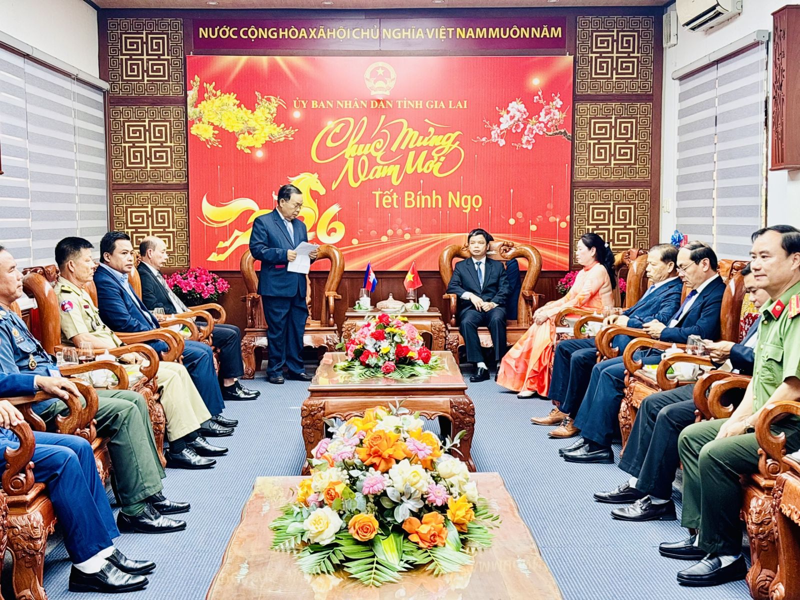 Phát biểu tại buổi tiếp, Phó Chủ tịch UBND tỉnh Nguyễn Hữu Quế bày tỏ vui mừng được đón Đoàn công tác tỉnh Preah Vihear sang thăm, chúc Tết; đồng thời nhấn mạnh những lời chúc mừng tốt đẹp của Ngài Toch Vong là nguồn động viên, khích lệ để tỉnh Gia Lai tiếp tục nỗ lực, phấn đấu, góp phần cùng cả nước Việt Nam ngày càng phát triển thịnh vượng.