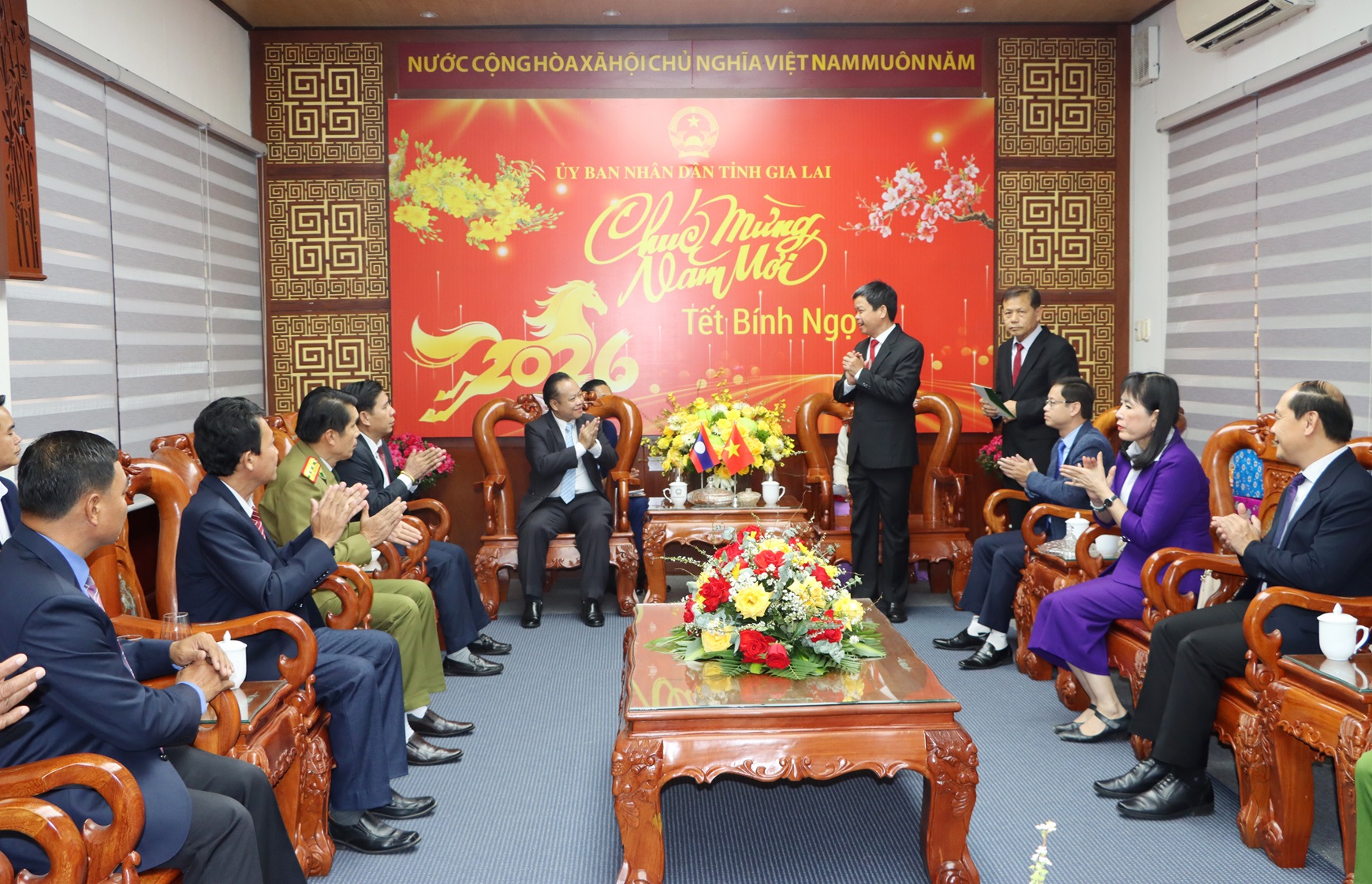 Thay mặt lãnh đạo tỉnh Attapeu, đồng chí Thanouxay Banxalith gửi những lời chúc tốt đẹp nhất tới lãnh đạo và Nhân dân tỉnh Gia Lai nhân dịp Tết Nguyên đán Bính Ngọ 2026; chúc tỉnh Gia Lai ngày càng phát triển nhanh và bền vững.