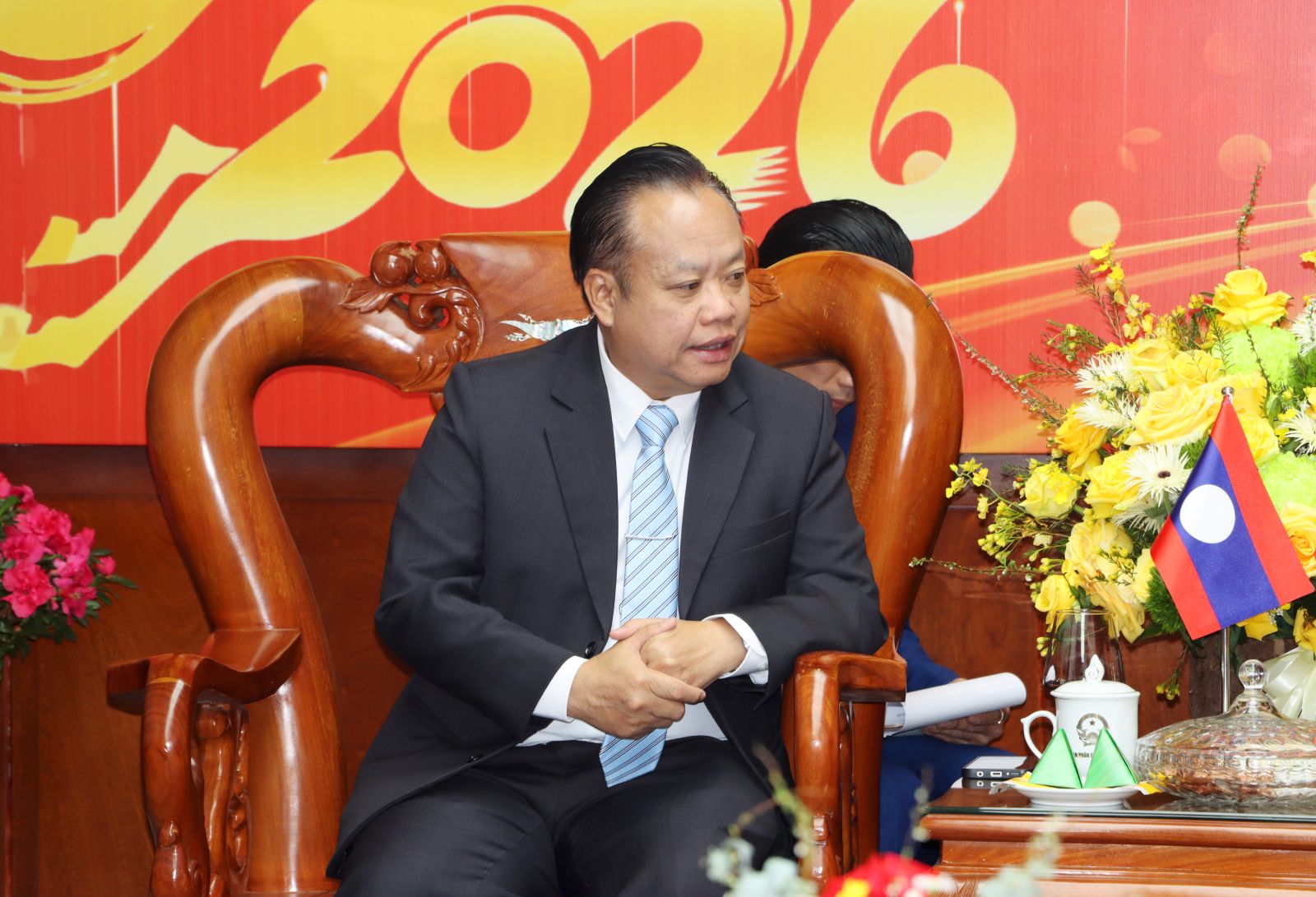 Đồng chí Thanouxay Banxalith chúc mừng những thành tựu phát triển kinh tế - xã hội tỉnh Gia Lai đạt được trong năm qua; đồng thời, chia sẻ với những thiệt hại nặng nề do thiên tai gây ra trên địa bàn tỉnh trong năm 2025.