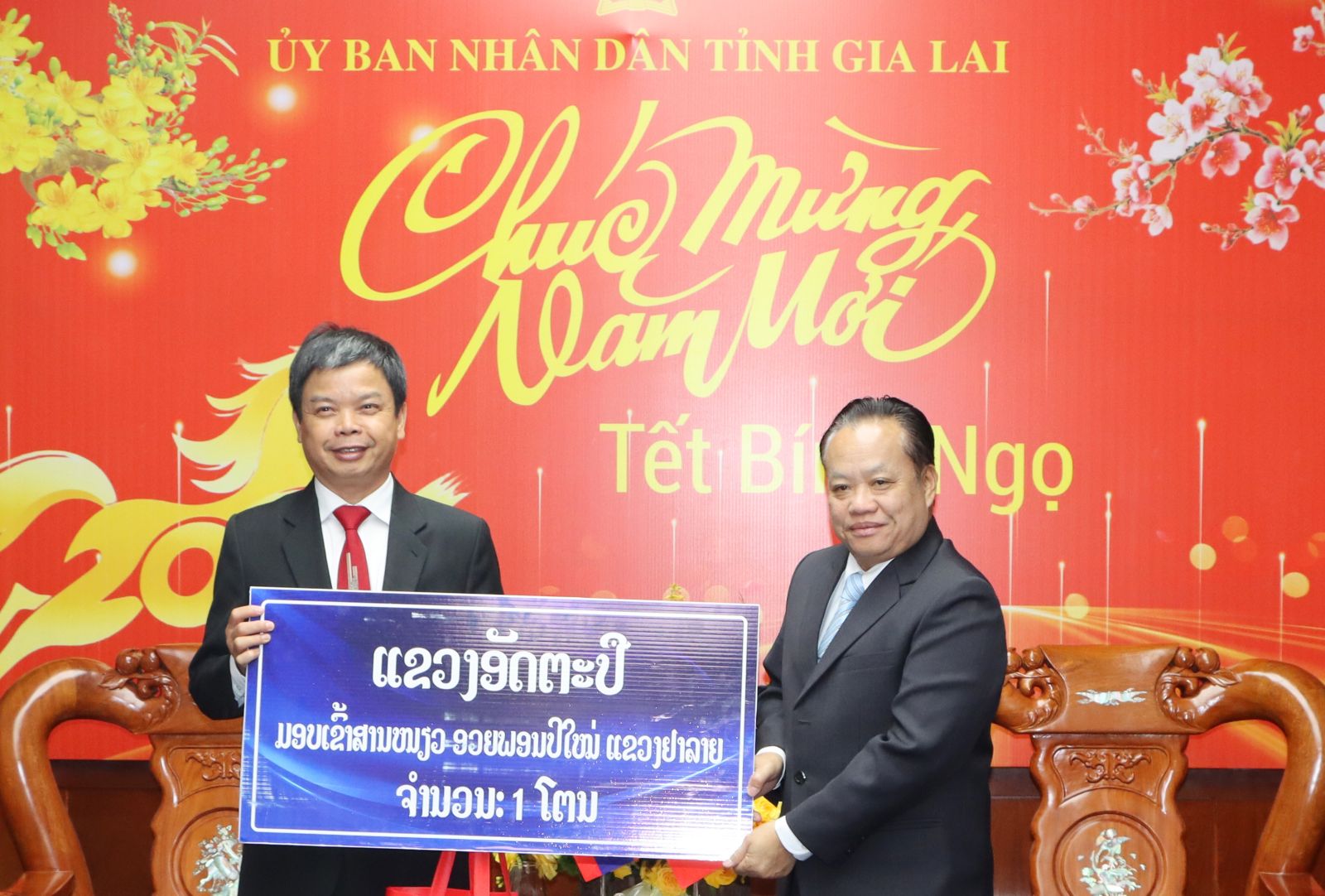 Đồng chí khẳng định, trong thời gian qua, mối quan hệ hữu nghị giữa hai tỉnh Gia Lai và Attapeu không ngừng được củng cố và đi vào chiều sâu, góp phần thúc đẩy phát triển kinh tế - xã hội mỗi địa phương. Đặc biệt, Đảng bộ, Chính quyền và Nhân dân tỉnh Attapeu đã tích cực hỗ trợ để tỉnh Gia Lai kịp thời khắc phục thiệt hại do thiên tai gây ra trong năm qua.
