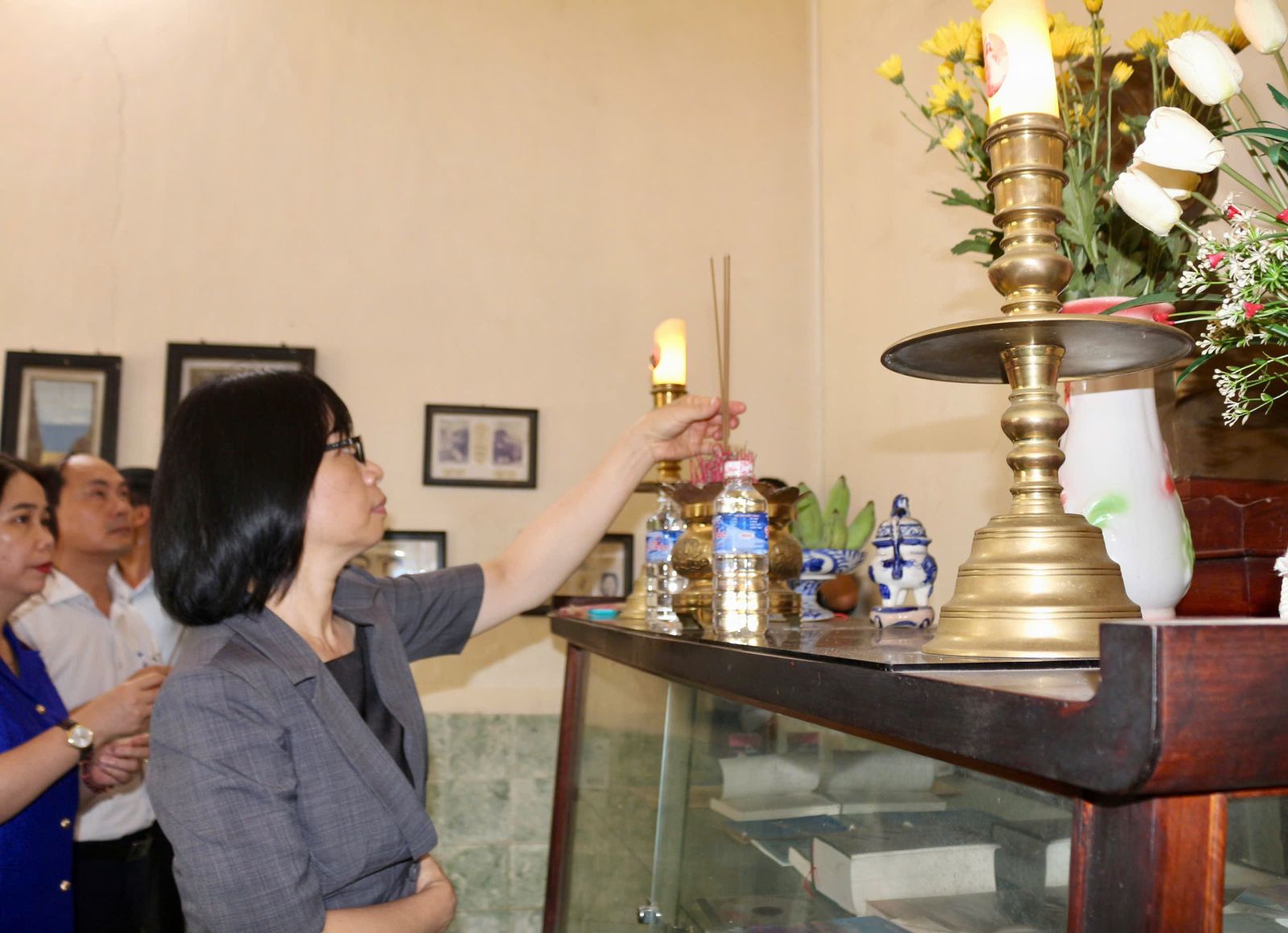 Phó Chủ tịch UBND tỉnh Nguyễn Thị Thanh Lịch thắp hương tưởng niệm nhà thơ Hàn Mặc Tử