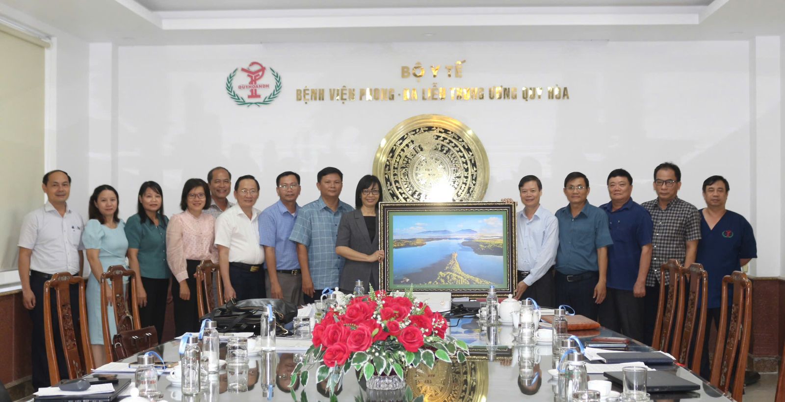 Đoàn công tác tặng quà lưu niệm cho bệnh viện da liễu Trung ương Quy Hoà