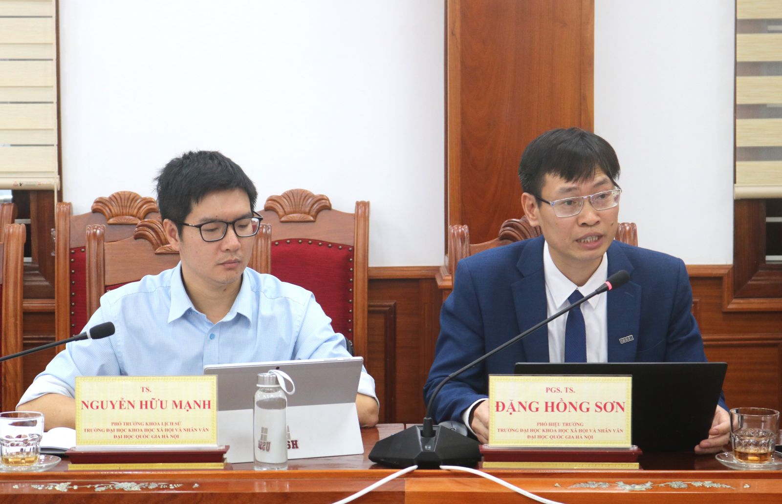 PGS.TS Đặng Hồng Sơn - Phó Hiệu trưởng Trường Đại học Khoa học Xã hội và Nhân văn trao đổi tại buổi làm việc.