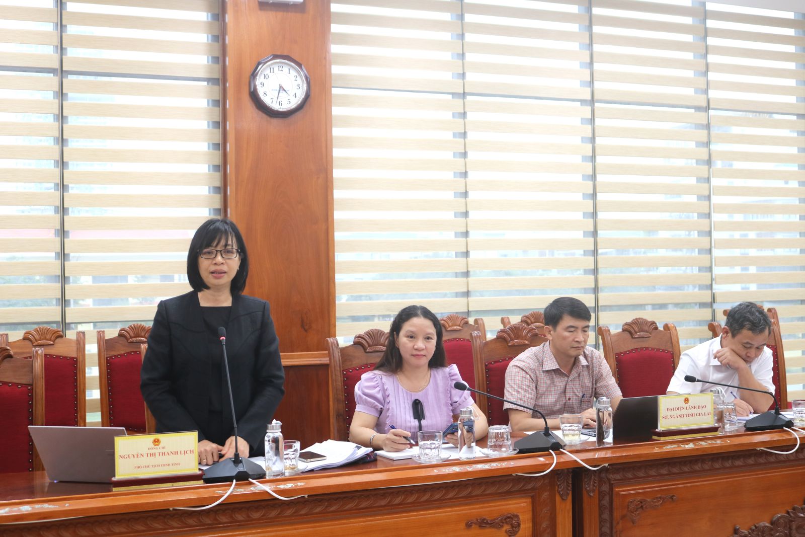 Phó Chủ tịch UBND tỉnh Nguyễn Thị Thanh Lịch phát biểu tại buổi làm việc.