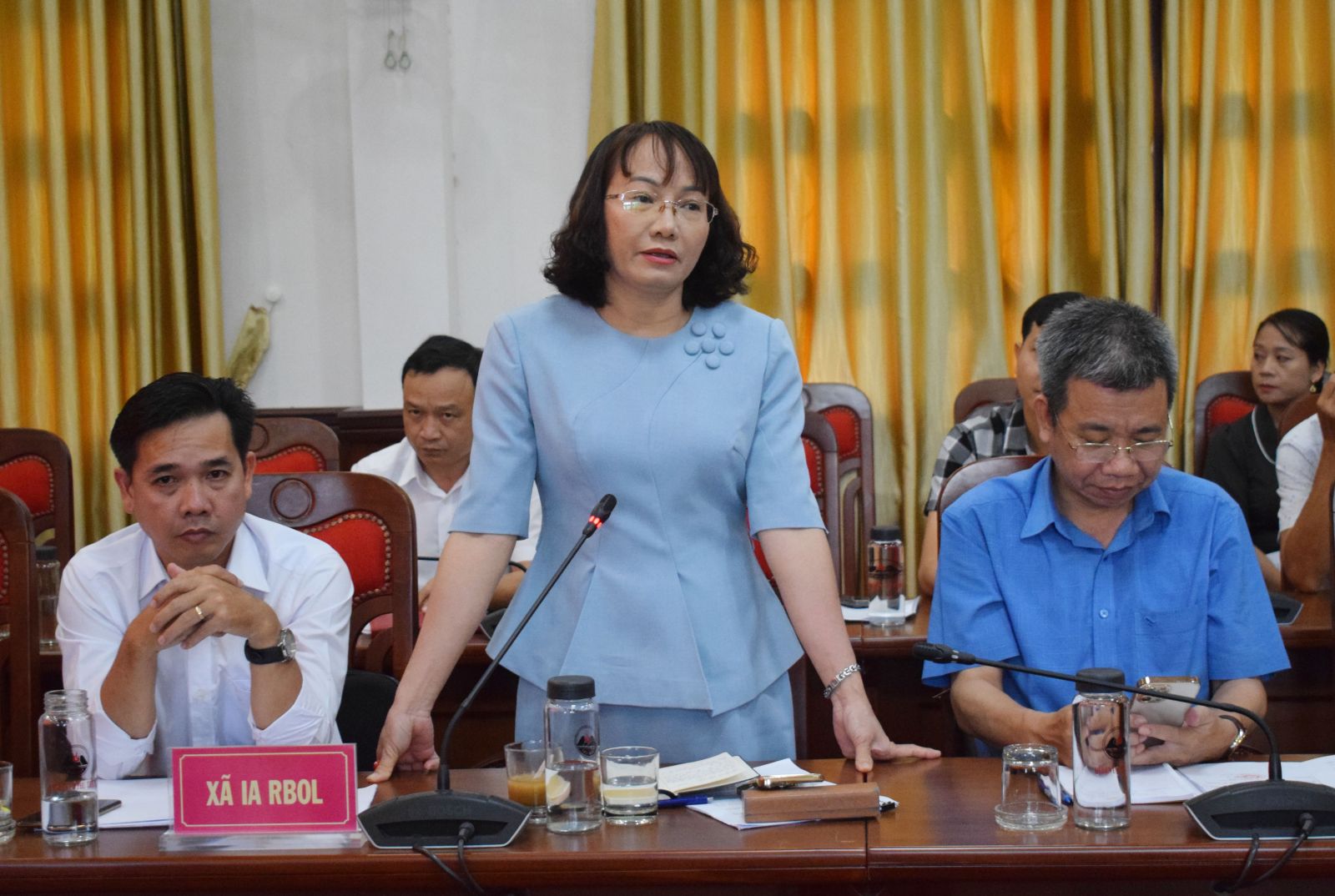 Lãnh đạo xã Ia Rbol báo cáo tại buổi làm việc
