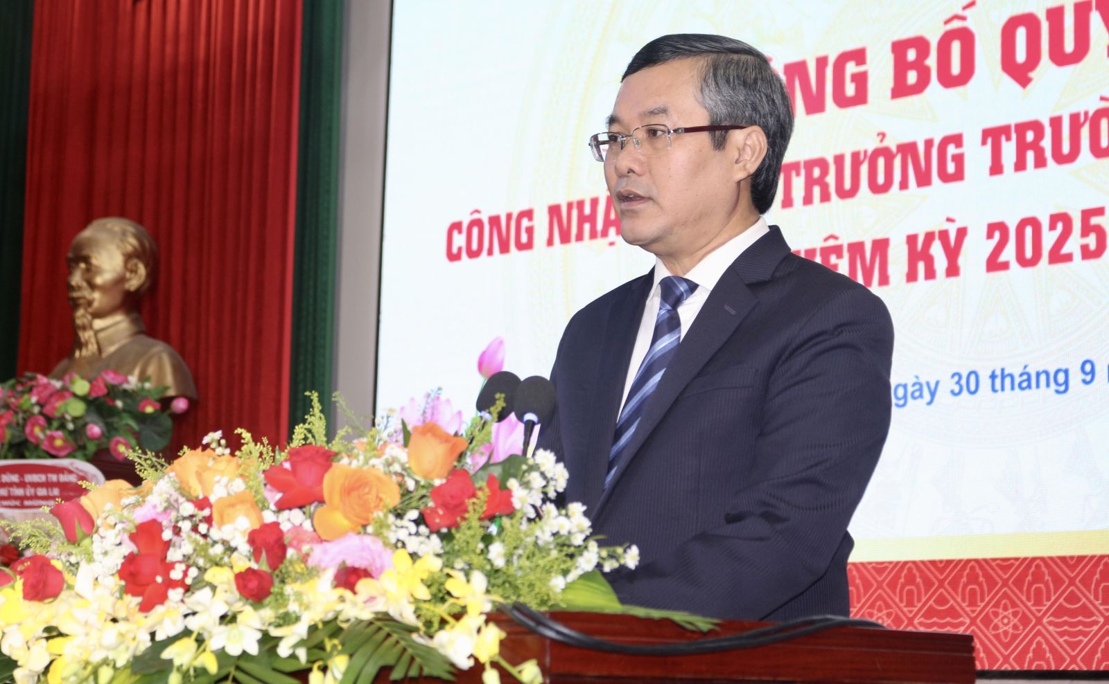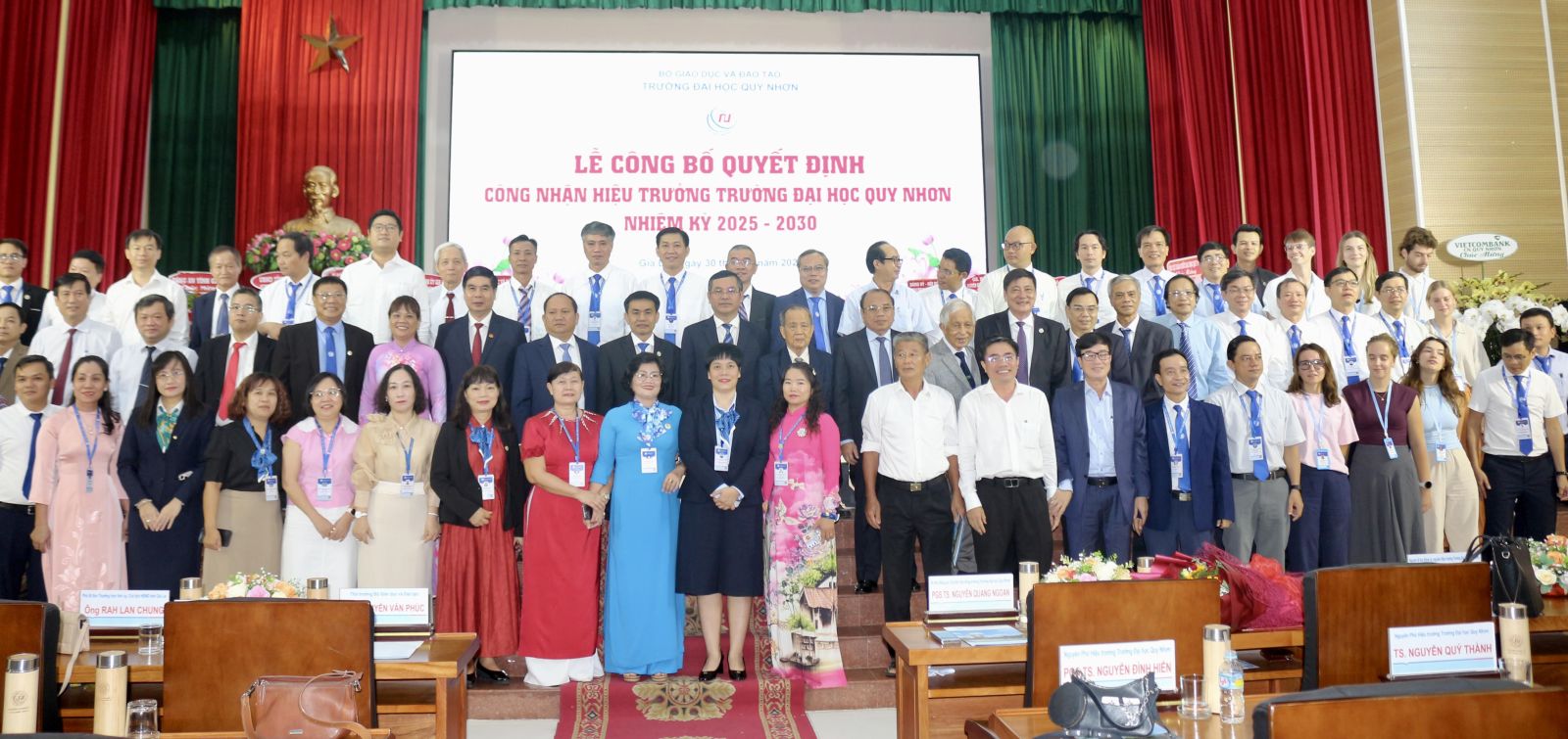 Tại buổi lễ, đại diện lãnh đạo Bộ Giáo dục và Đào tạo đã công bố quyết định số 2589/QĐ-BGDĐT ngày 11/9/2025 của Bộ Giáo dục và Đào tạo về việc công nhận Hiệu trưởng trường Đại học Quy Nhơn. Theo đó, công nhận Phó Giáo sư, Tiến sĩ Đoàn Đức Tùng – Hiệu trưởng Trường Đại học Quy Nhơn nhiệm kỳ 2020-2025 giữ chức Hiệu trưởng Trường Đại học Quy Nhơn nhiệm kỳ 2025-2030.