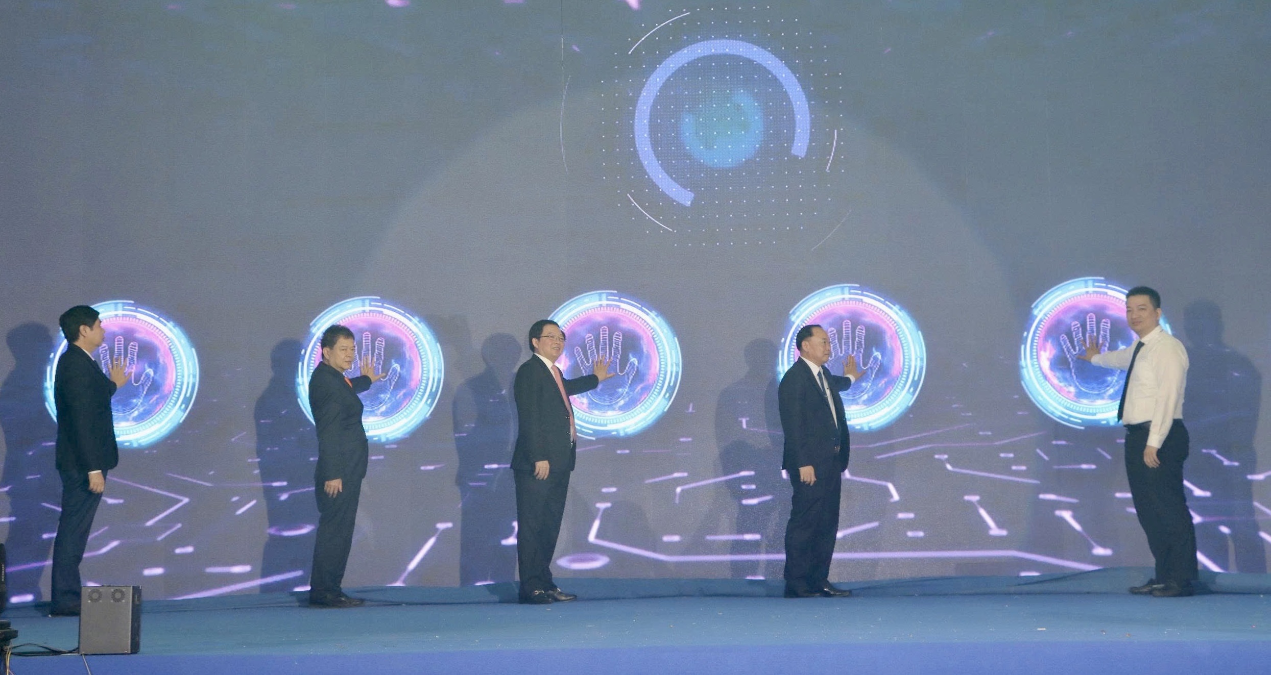 Đại biểu thực hiện nghi thức bấm nút khởi công Dự án Trung tâm nghiên cứu trí tuệ nhân tạo AI tại tỉnh Gia Lai