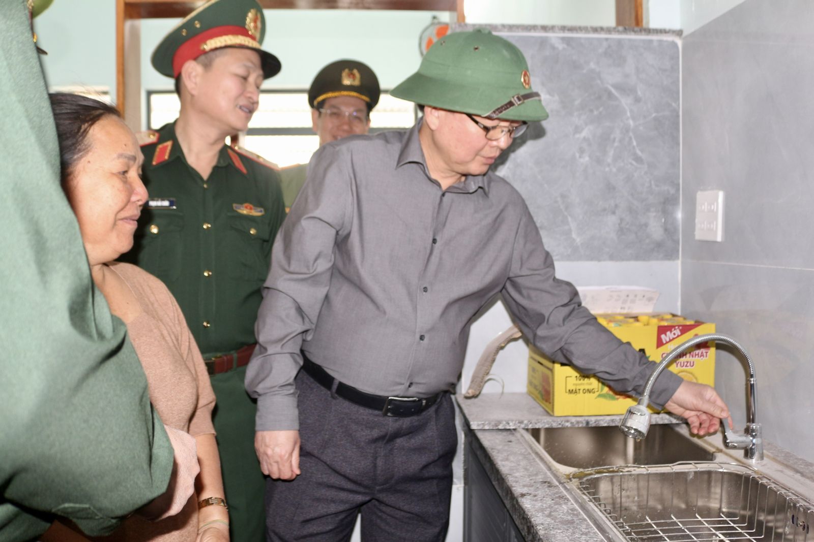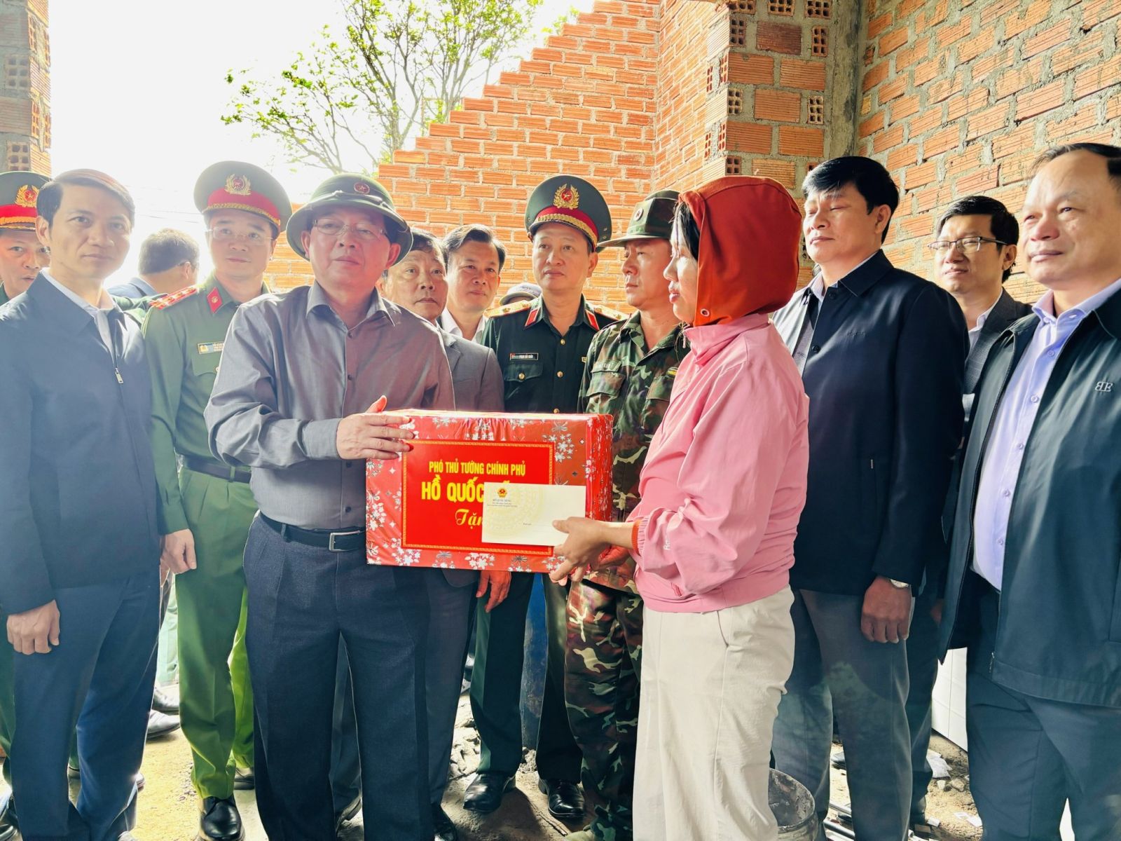 Tặng quà cho lực lượng quân đội tham gia giúp người dân xây dựng nhà