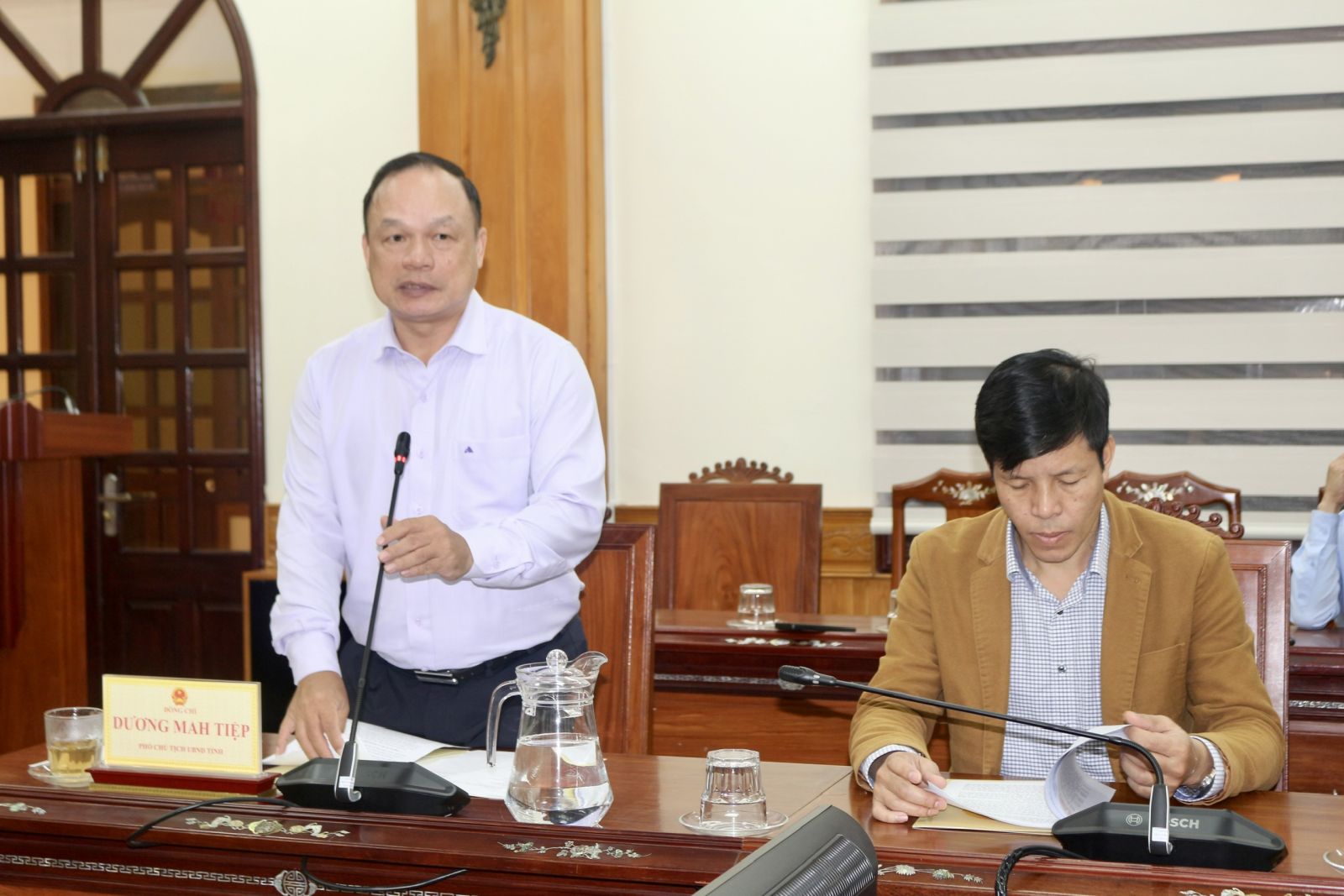 Phó Chủ tịch UBND tỉnh Dương Mah Tiệp báo cáo tại buổi làm việc