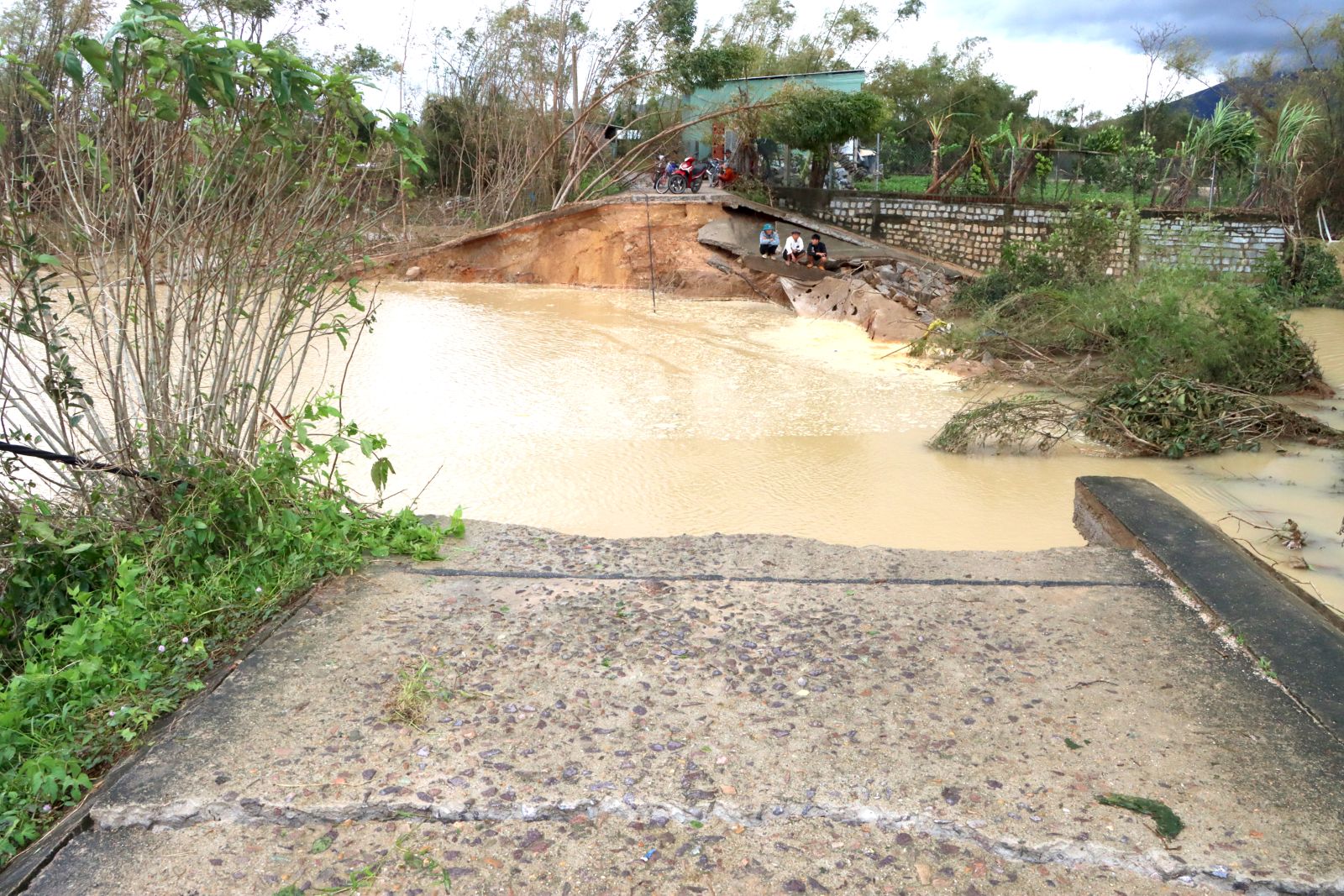 Mưa lớn và lũ từ thượng nguồn đổ về làm vỡ đê sông Luật Lễ, gây chia cắt khu dân cư.