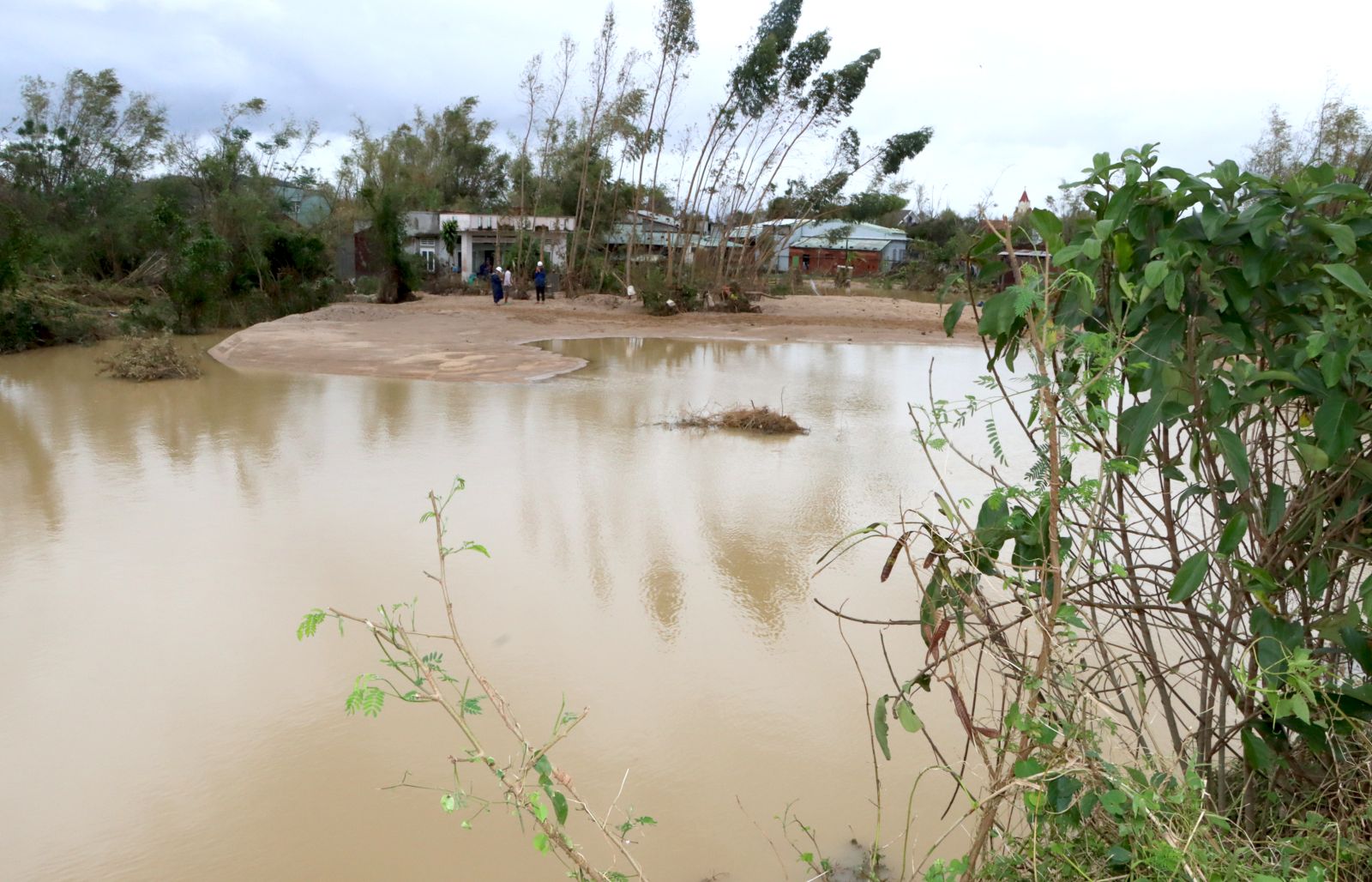 Phó Thủ tướng Lê Thành Long và đoàn công tác kiểm tra tình hình thiệt hại tại thôn Luật Lễ, xã Tuy Phước.