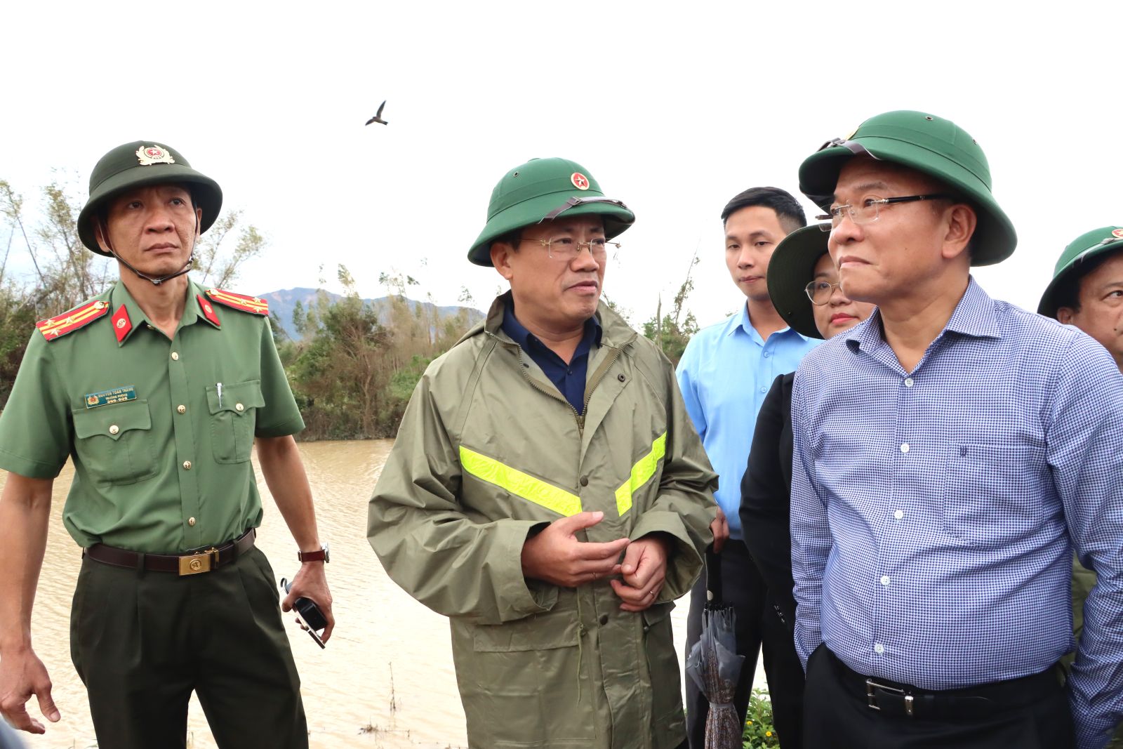 Phó Thủ tướng Chính phủ Lê Thành Long kiểm tra đoạn đê sông Luật Lễ bị vỡ.