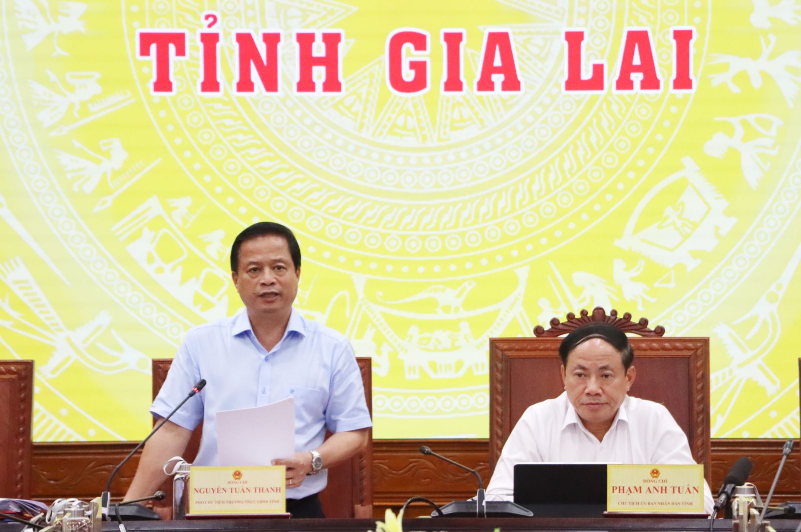 Phó Chủ tịch Thường trực UBND tỉnh Nguyễn Tuấn Thanh phát biểu tại hội nghị.