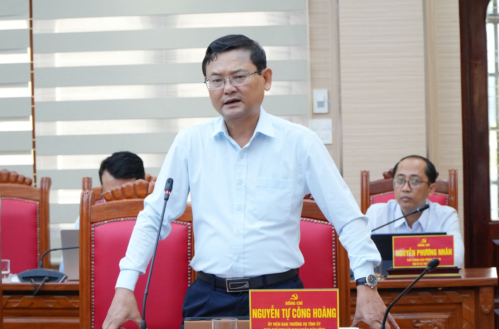 Phó Chủ tịch UBND tỉnh Nguyễn Tự Công Hoàng phát biểu tại cuộc họp.