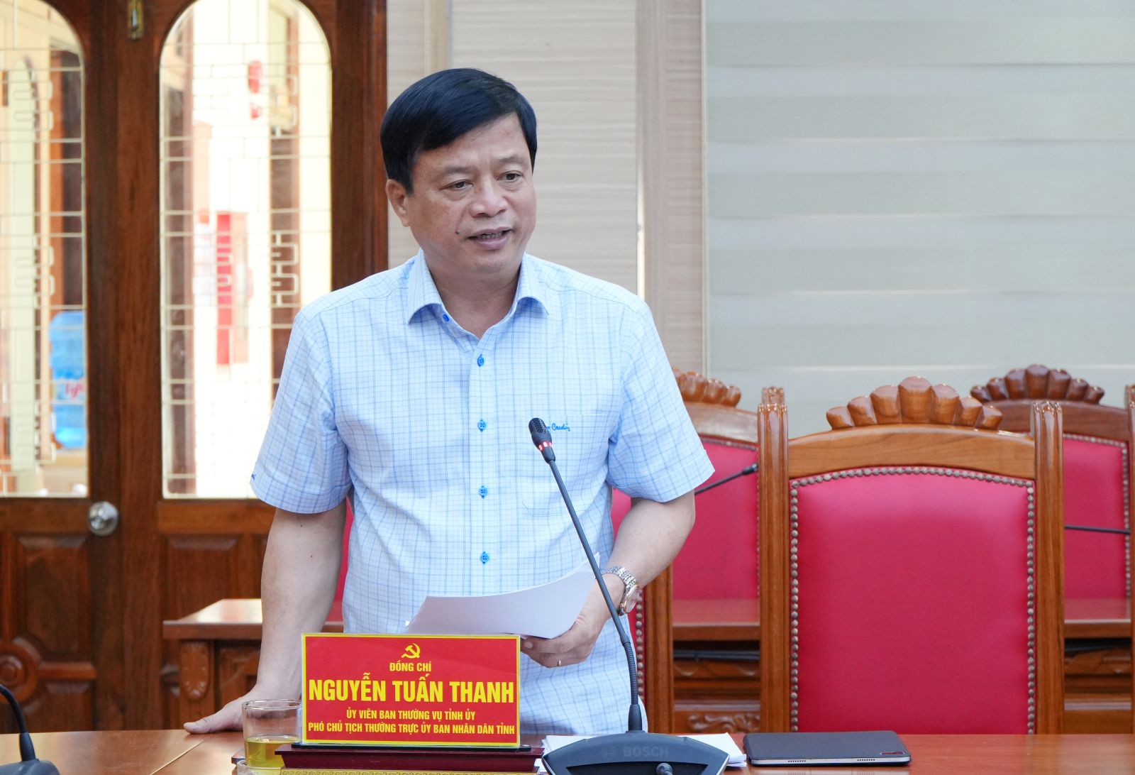Phó Chủ tịch Thường trực UBND tỉnh Nguyễn Tuấn Thanh phát biểu tại cuộc họp.
