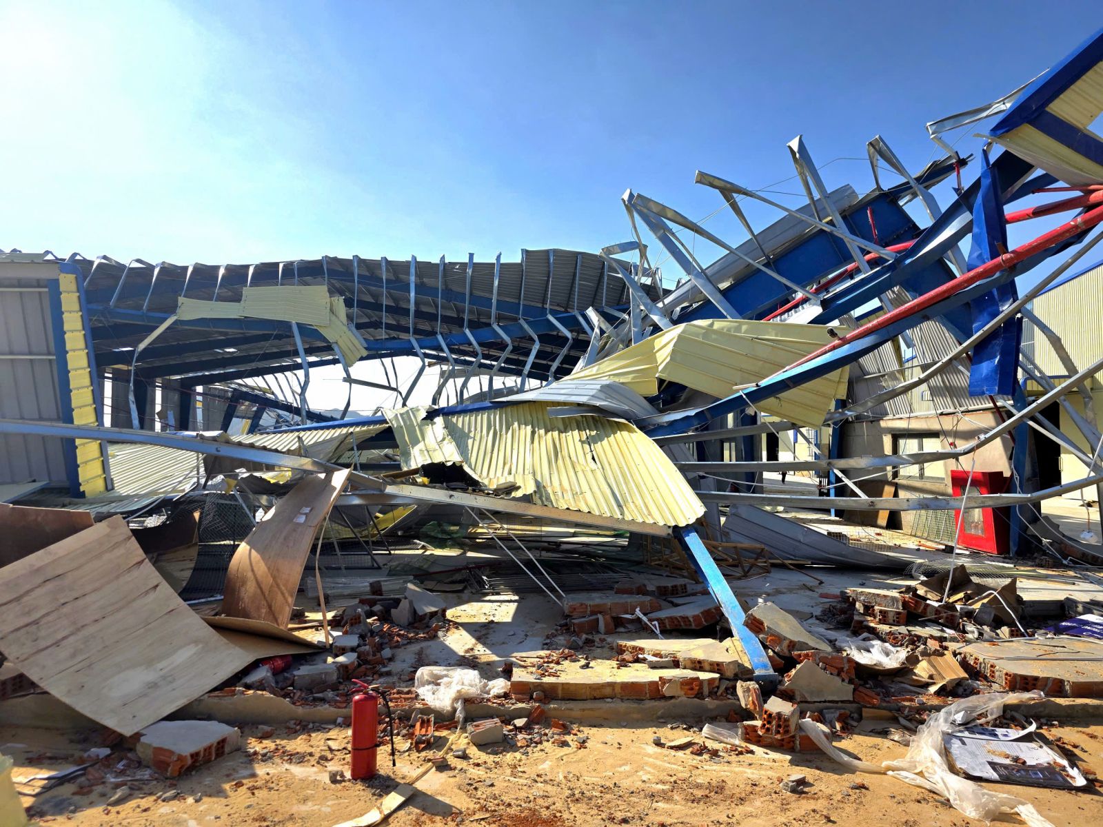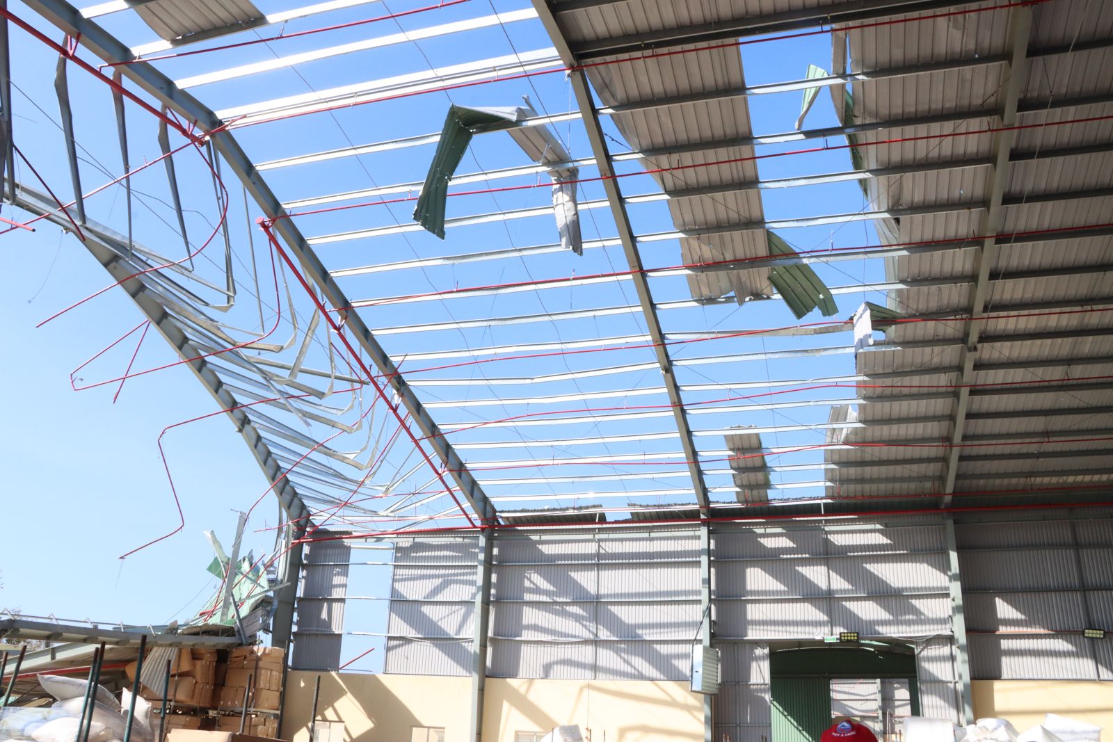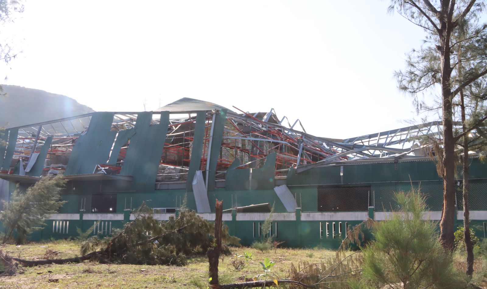 Nhiều nhà xưởng trong Khu kinh tế Nhơn Hội bị hư hại nặng nề.
