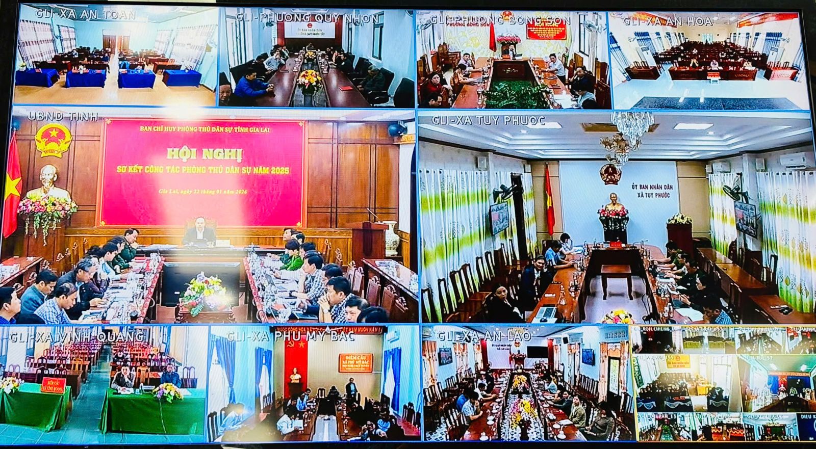 Hội nghị được kết nối trực tuyến đến các điểm cầu xã, phường trên địa bàn tỉnh