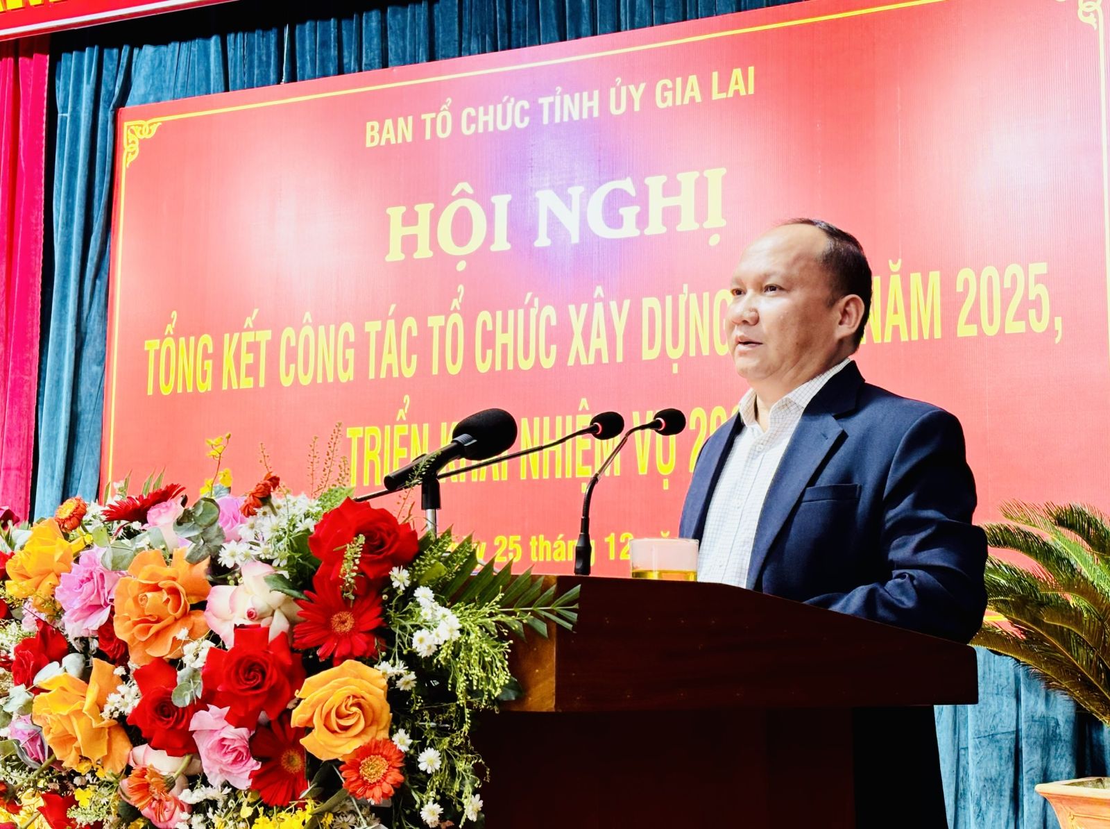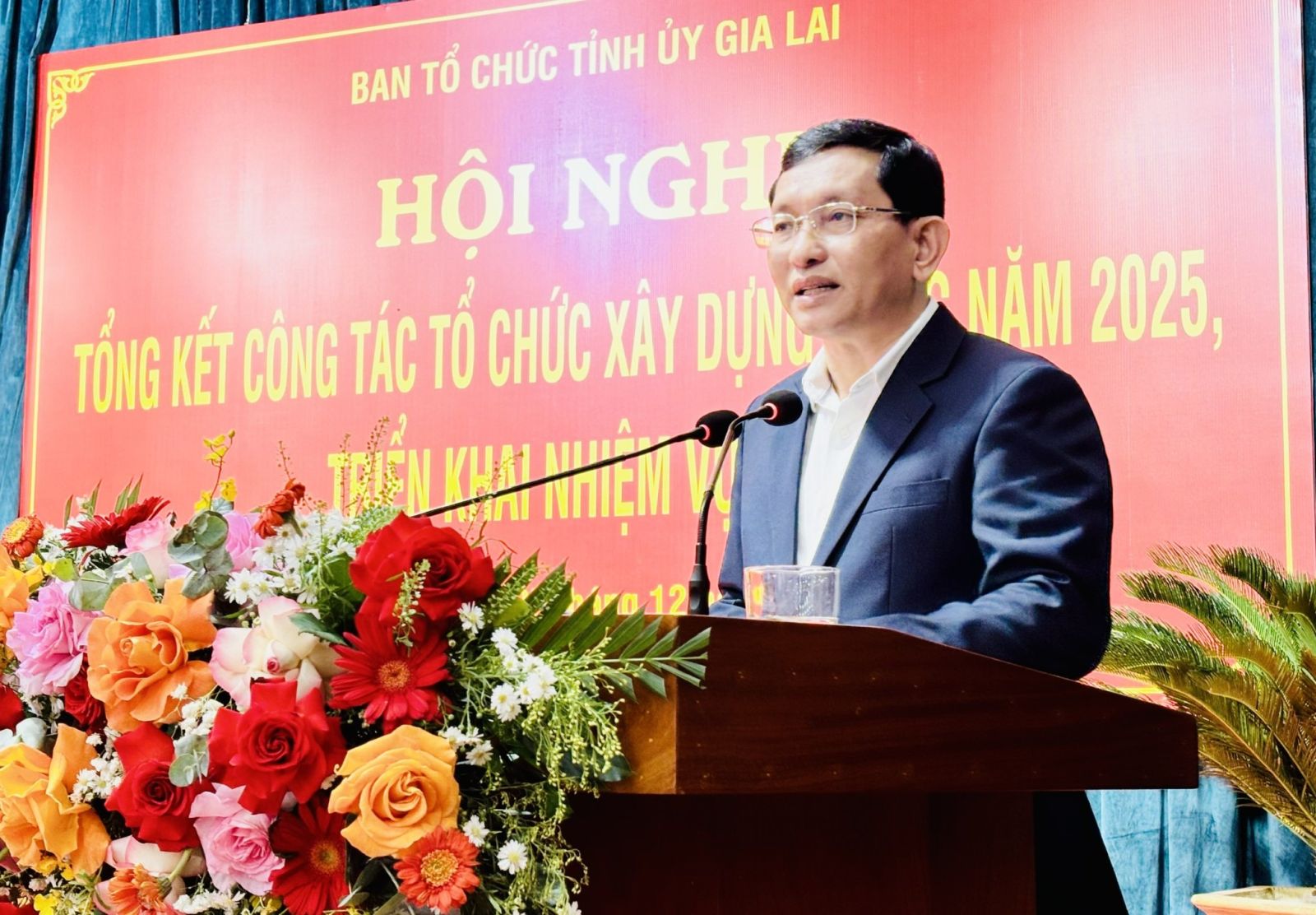 Phát biểu chỉ đạo hội nghị, Phó Bí thư Thường trực Tỉnh uỷ Rah Lan Chung nhấn mạnh: Năm 2025 là năm có ý nghĩa đặc biệt quan trọng đối với Đảng bộ tỉnh; là năm toàn Đảng tập trung triển khai đồng thời nhiều chủ trương lớn, mang tính chiến lược lâu dài. Trong bối cảnh đó, Ban Tổ chức Tỉnh ủy và ngành Tổ chức xây dựng Đảng các cấp đã phát huy tinh thần trách nhiệm, nỗ lực rất cao, hoàn thành khối lượng công việc rất lớn, góp phần quan trọng vào kết quả chung của Đảng bộ tỉnh. Thay mặt Ban Thường vụ Tỉnh ủy, đồng chí Rah Lan Chung ghi nhận và đánh giá cao những nỗ lực, kết quả của Ban Tổ chức Tỉnh ủy và toàn ngành Tổ chức xây dựng Đảng trong năm 2025.