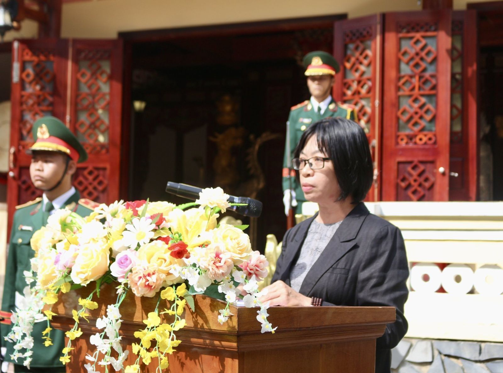 Phó Chủ tịch UBND tỉnh Nguyễn Thị Thanh Lịch đọc diễn văn tại buổi lễ