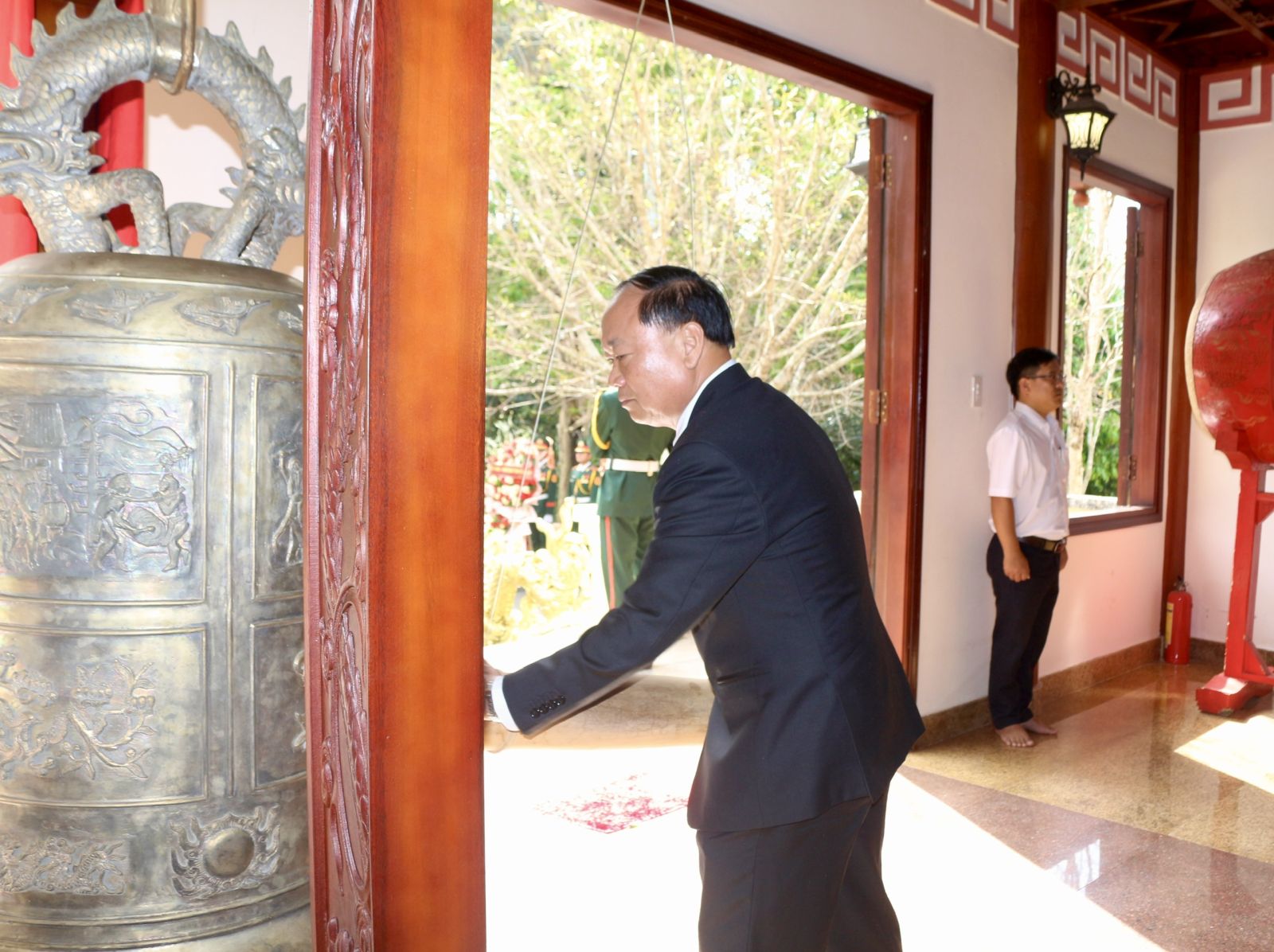 Bí thư Tỉnh ủy Thái Đại Ngọc thực hiện nghi thức thỉnh chuông