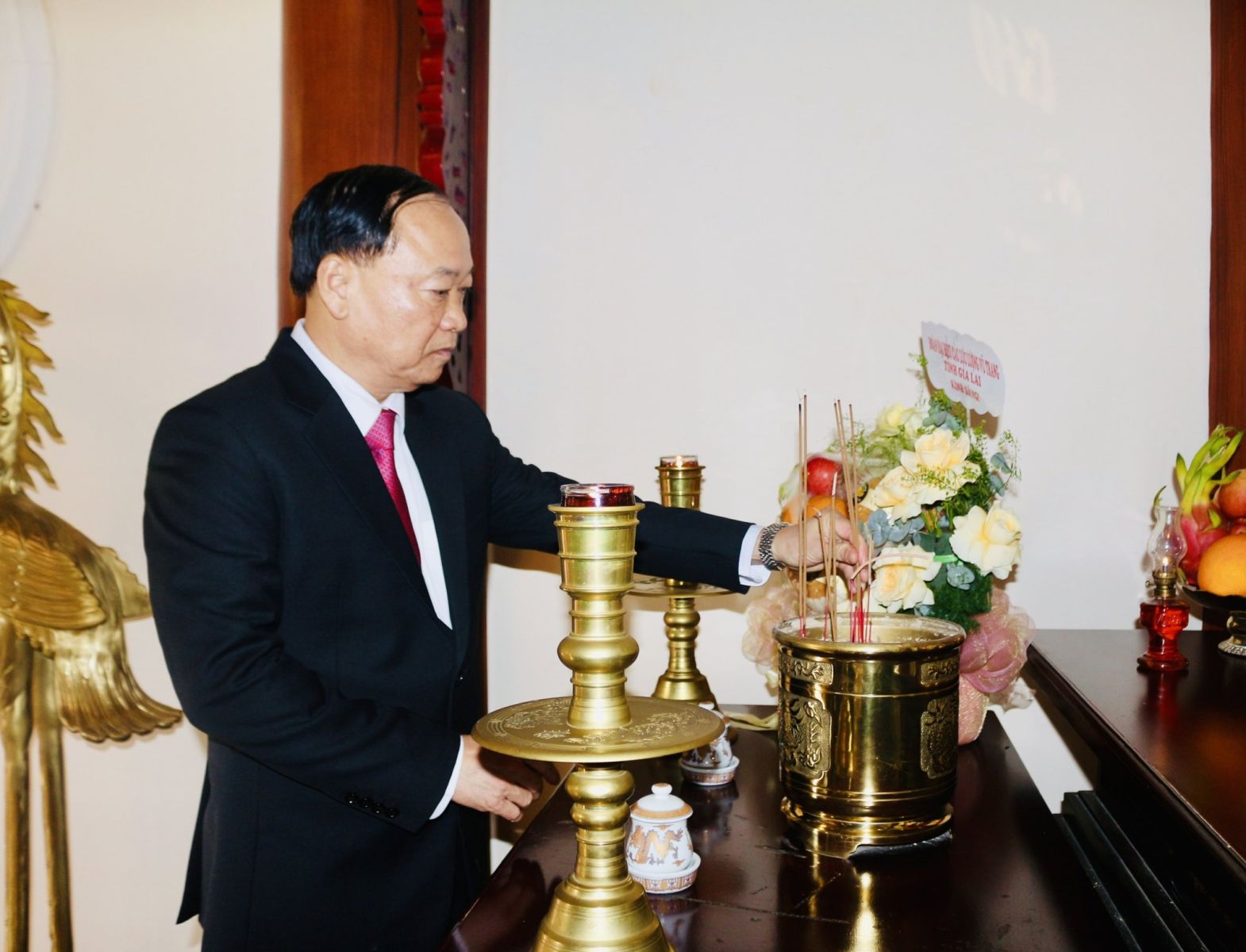 Trong không gian linh thiêng của khu di tích, các đại biểu đã kính cẩn dâng hoa, dâng hương tưởng nhớ Chủ tịch Hồ Chí Minh vĩ đại – vị lãnh tụ thiên tài của Đảng và dân tộc. Những hồi chuông, hồi trống ngân vang giữa đại ngàn như nhắc nhớ về một thời kỳ đấu tranh gian khổ mà anh dũng của quân và dân các dân tộc Gia Lai.