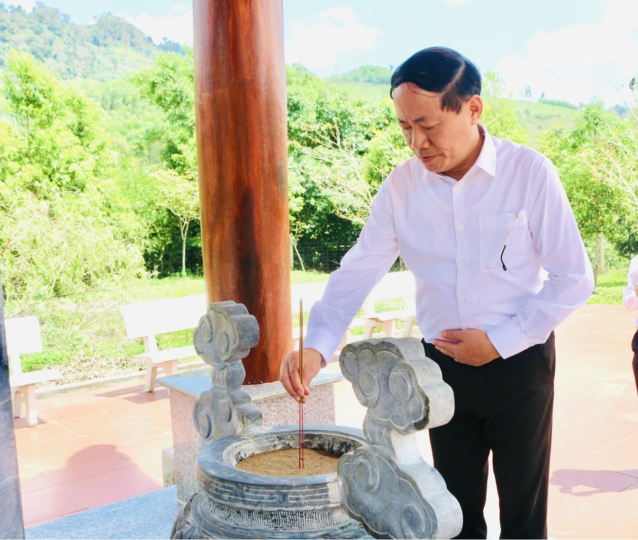 Chủ tịch Phạm Anh Tuấn thắp nén hương tri ân tại Khu di tích nhà bia Ủy ban Hành chính kháng chiến