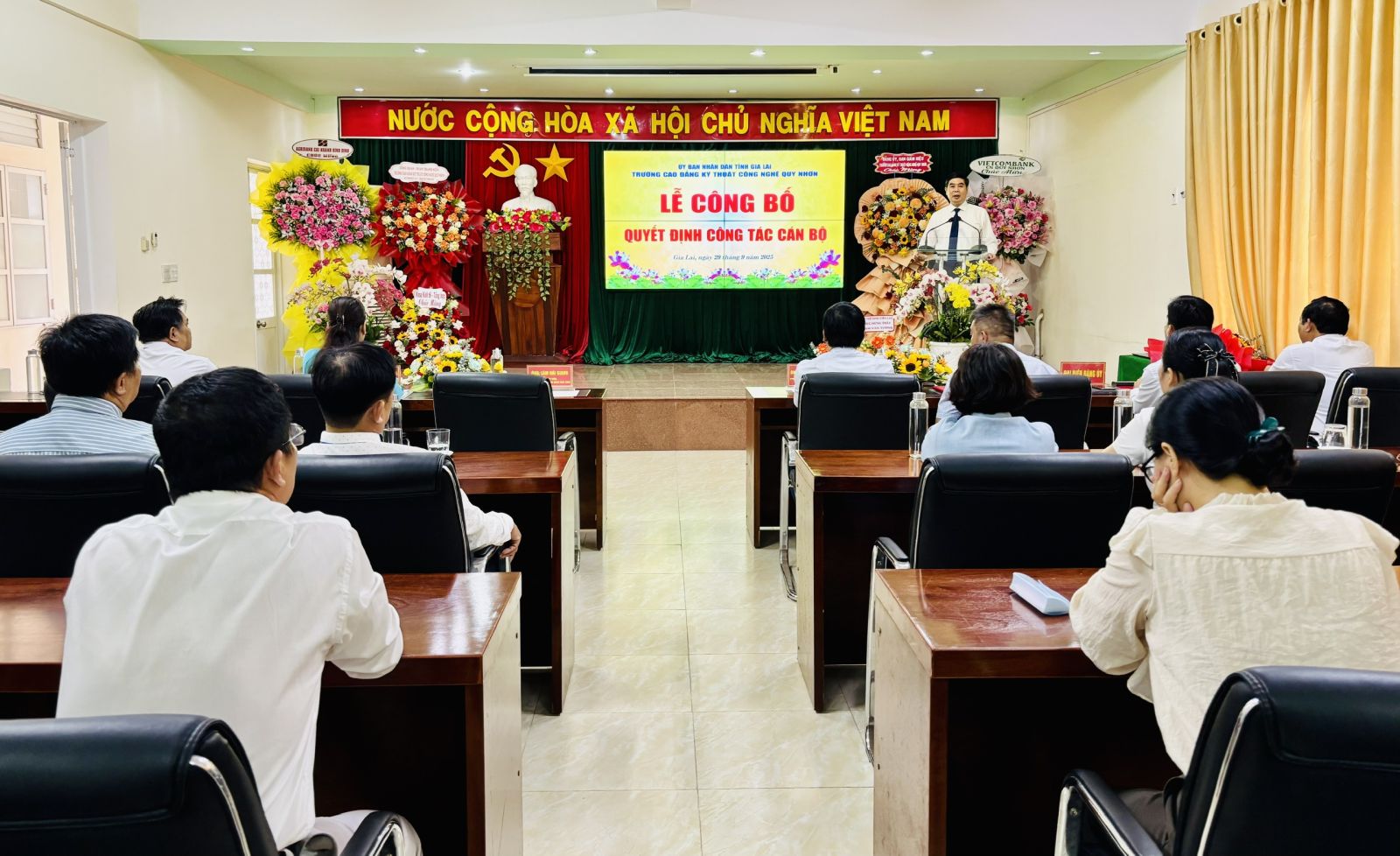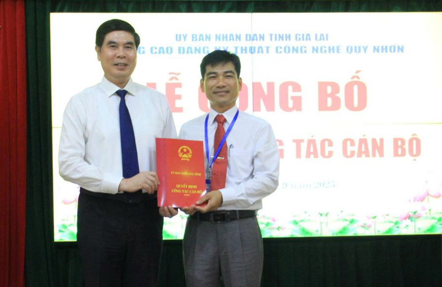 Tại buổi Lễ, thừa uỷ quyền Chủ tịch UBND tỉnh, Phó Giám đốc Sở Nội vụ Phạm Minh Trung đã công bố quyết định số 1793/QĐ-UBND, ngày 12/9/2025 về việc bổ nhiệm Hiệu trưởng Trường Cao đẳng Kỹ thuật Công nghệ Quy Nhơn. Theo đó, bổ nhiệm ông Phạm Văn Tường, Phó Hiệu trưởng phụ trách Trường Cao đẳng Kỹ thuật Công nghệ Quy Nhơn giữ chức vụ Hiệu trưởng Trường Cao đẳng Kỹ thuật Công nghệ Quy Nhơn. Thời hạn bổ nhiệm 05 năm, kể từ ngày 15/9/2025.