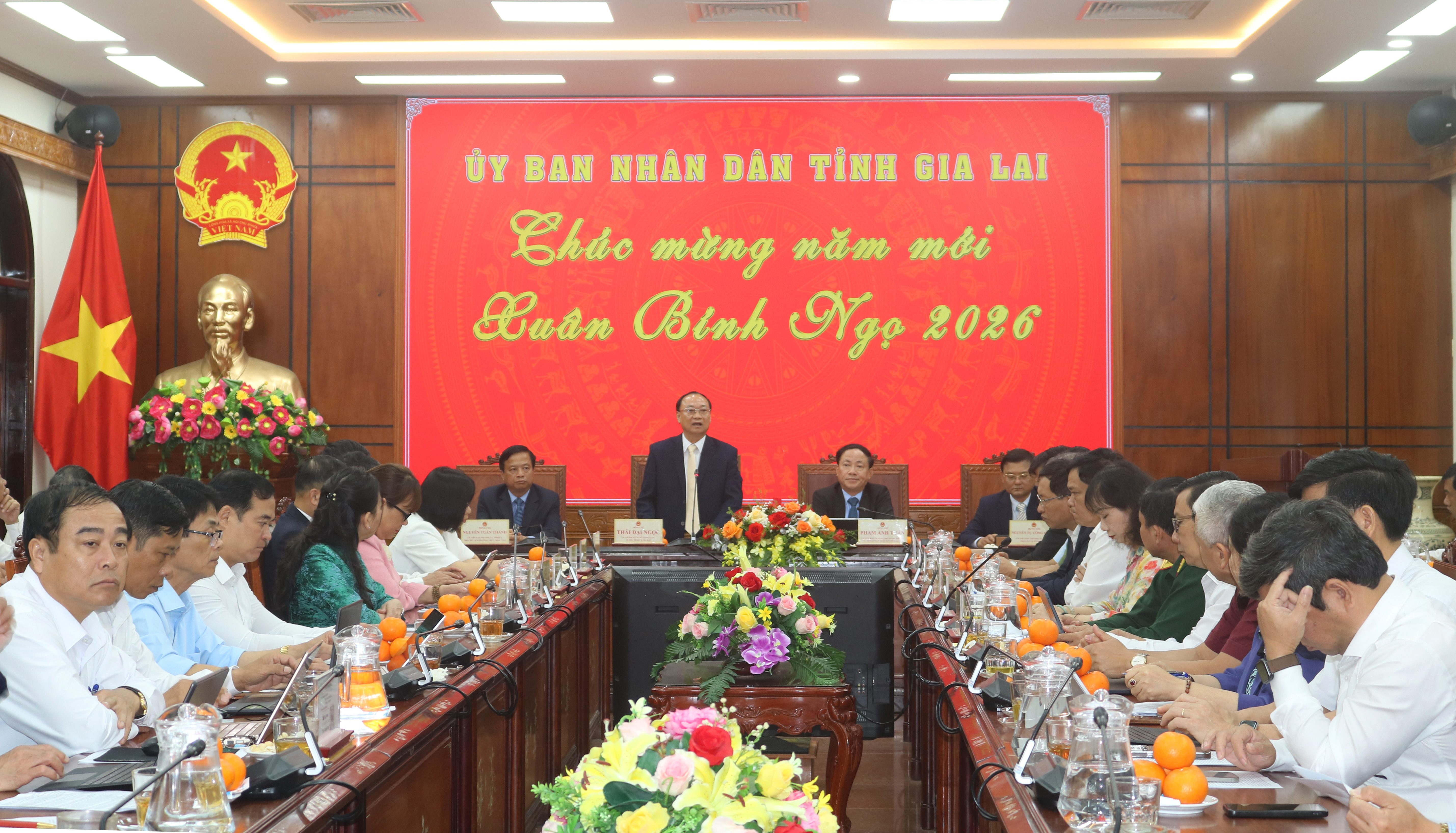 Nhân dịp năm mới, Bí thư Tỉnh ủy Thái Đại Ngọc chúc toàn thể đại biểu dự họp mạnh khỏe, hạnh phúc và thành công; hoàn thành xuất sắc nhiệm vụ được giao, góp phần thực hiện thắng lợi chỉ tiêu tăng trưởng hai con số trong năm 2026 của tỉnh Gia Lai.