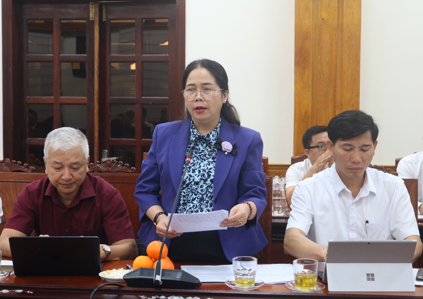 Giám đốc Sở Văn hóa, Thể thao và Du lịch Đỗ Thị Diệu Hạnh báo cáo công tác tổ chức các hoạt động văn hóa, văn nghệ, vui chơi giải trí trong dịp Tết.