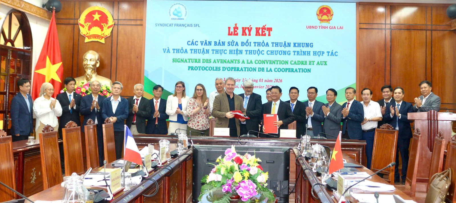 Tỉnh Gia Lai và Nghiệp đoàn SFL của Pháp ký kết văn bản sửa đổi Thỏa thuận khung và 03 văn bản sửa đổi Thỏa thuận thực hiện