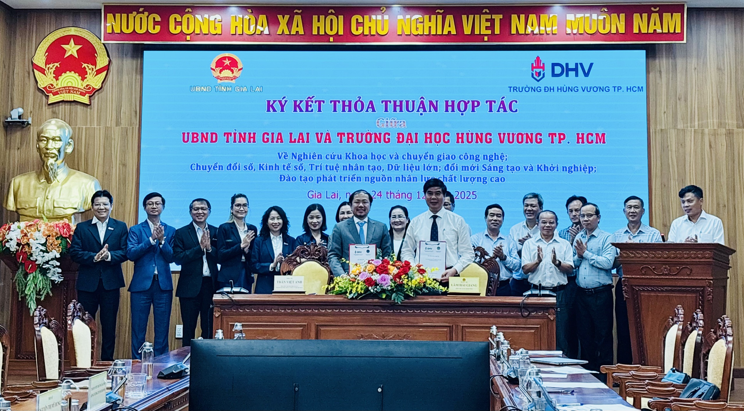 Phát biểu tại buổi ký kết, Phó Chủ tịch UBND tỉnh Lâm Hải Giang đánh giá cao tiềm lực đào tạo, nghiên cứu khoa học và chuyển giao công nghệ của Trường Đại học Hùng Vương TP. Hồ Chí Minh; đồng thời khẳng định việc ký kết Thỏa thuận hợp tác là bước đi quan trọng, góp phần nâng cao chất lượng nguồn nhân lực, thúc đẩy chuyển đổi số, đổi mới sáng tạo, đáp ứng yêu cầu phát triển nhanh và bền vững của tỉnh Gia Lai trong giai đoạn tới.