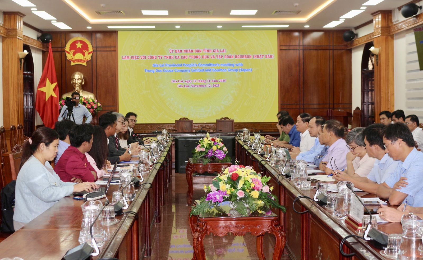 Phát biểu tại buổi làm việc, Chủ tịch UBND tỉnh Phạm Anh Tuấn bày tỏ vui mừng khi được đón tiếp lãnh đạo Tập đoàn Bourbon và Công ty TNHH Ca cao Trọng Đức. Chủ tịch UBND tỉnh cho biết Gia Lai cam kết đồng hành và tạo điều kiện tốt nhất cho Tập đoàn Bourbon và Công ty TNHH Ca cao Trọng Đức để mở rộng vùng nguyên liệu phát triển và xuất khẩu ca cao chất lượng cao.