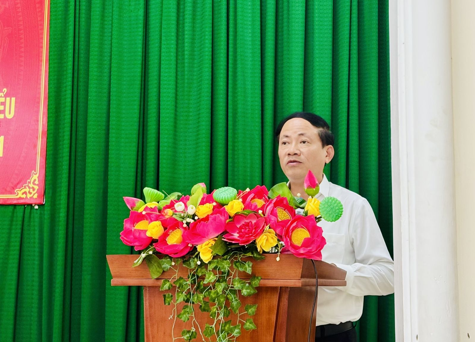 Đồng chí Phạm Anh Tuấn - ứng cử viên HĐND tỉnh khóa XIII trình bày chương trình hành động