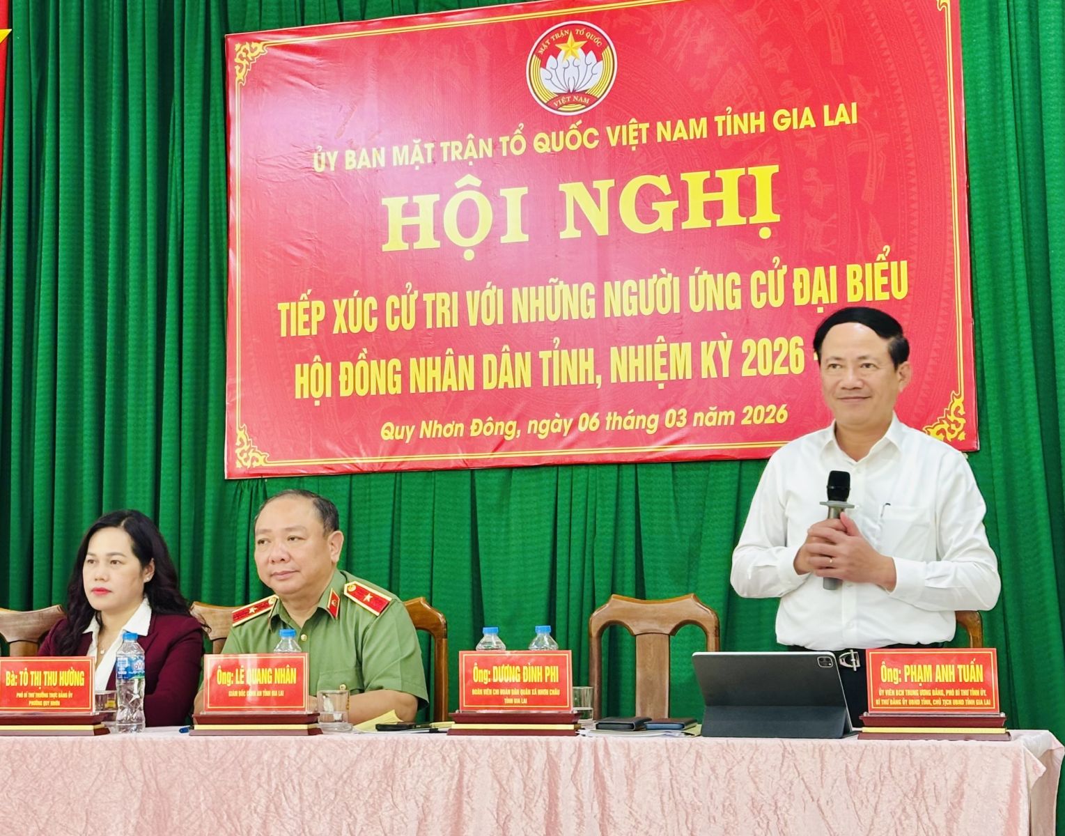 Phát biểu tại hội nghị, thay mặt các ứng cử viên, đồng chí Phạm Anh Tuấn bày tỏ cảm ơn sự tin tưởng, động viên, ủng hộ của cử tri đối với các ứng viên. Đồng chí khẳng định các ứng viên tại đơn vị bầu cử số 1 sẽ nỗ lực phấn đấu, đem hết khả năng, trí lực để thực hiện tốt chương trình hành động đã đề ra nhằm đưa Gia Lai nói chung và Quy Nhơn Đông nói riêng ngày càng phát triển, đáp ứng sự kỳ vọng của bà con cử tri và nhân dân trong toàn tỉnh.