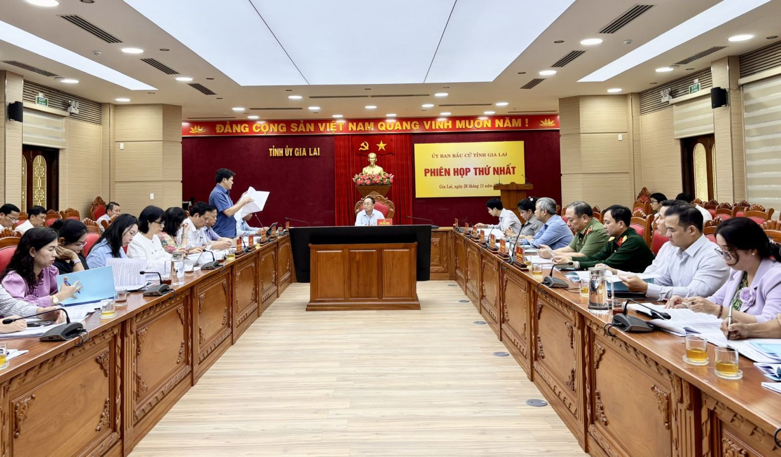 Các đại biểu tham dự phiên họp thứ nhất của Ủy ban bầu cử tỉnh Gia Lai