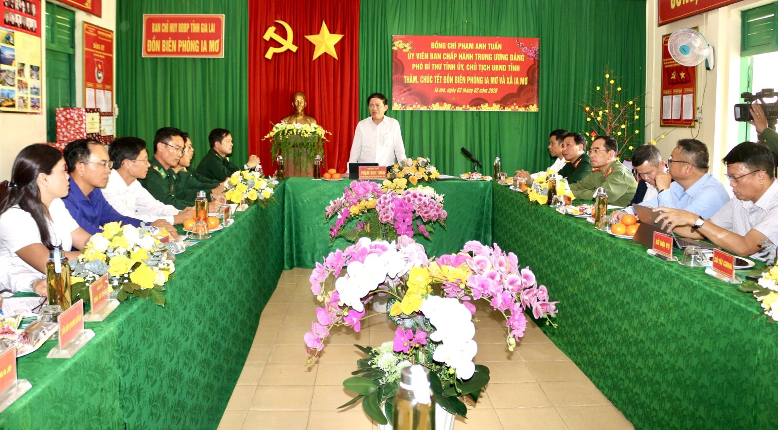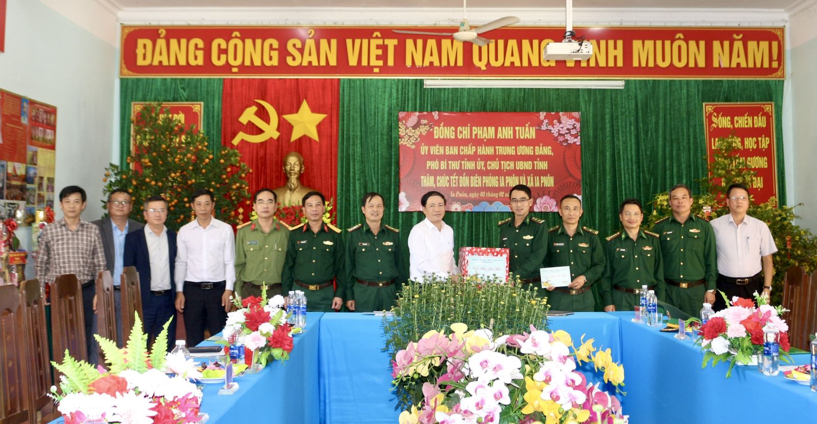Thăm, chúc Tết tại 4 Đồn Biên phòng và Đảng ủy, UBND các xã: Ia Pnôn, Ia Púch, Ia Mơ, Ia Lốp, Chủ tịch UBND tỉnh Phạm Anh Tuấn đã nghe đại diện lãnh đạo các Đồn Biên phòng và lãnh đạo các xã biên giới thông tin về tình hình triển khai các nhiệm vụ quân sự, quốc phòng, biên phòng năm 2025, công tác quản lý, bảo vệ chủ quyền, lãnh thổ, an ninh biên giới quốc gia; công tác chăm lo Tết cho Nhân dân khu vực biên giới, các hộ gia đình chính sách, hộ nghèo, hộ cận nghèo; công tác đối ngoại với các xã biên giới của nước bạn Campuchia.