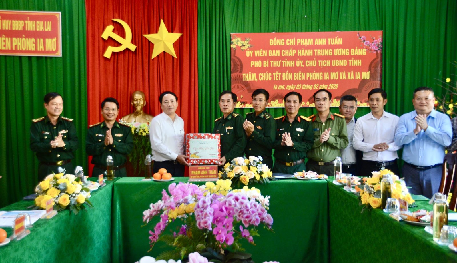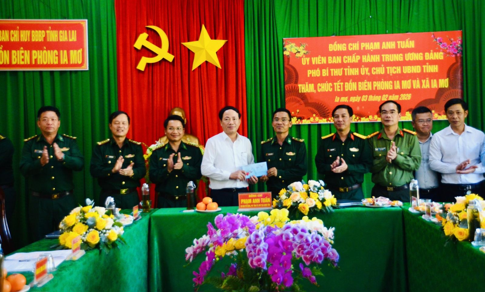 Dịp này, thay mặt lãnh đạo tỉnh, đồng chí Phạm Anh Tuấn đã trao quà của Tỉnh ủy, HĐND, UBND, Ủy ban MTTQ Việt Nam tỉnh cho 4 Đồn Biên phòng và 3 xã biên giới. Đồng thời, trao kinh phí hỗ trợ để 4 Đồn Biên phòng Ia Pnôn, Ia Mơ, Ia Púch và Ia Lốp triển khai Chương trình “Mỗi tuần giúp đỡ một hộ nghèo” trong năm 2026.