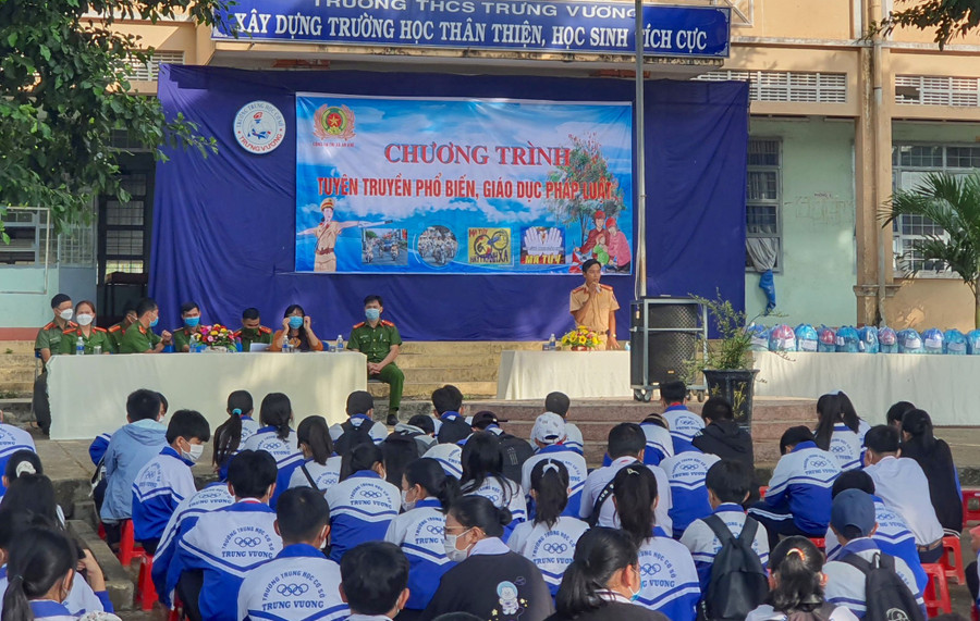 Ngành Giáo dục tỉnh thường xuyên phối hợp với các ngành, đơn vị liên quan tổ chức chương trình tuyên truyền, PBGDPL cho học sinh. Ảnh: baogialai.com.vn